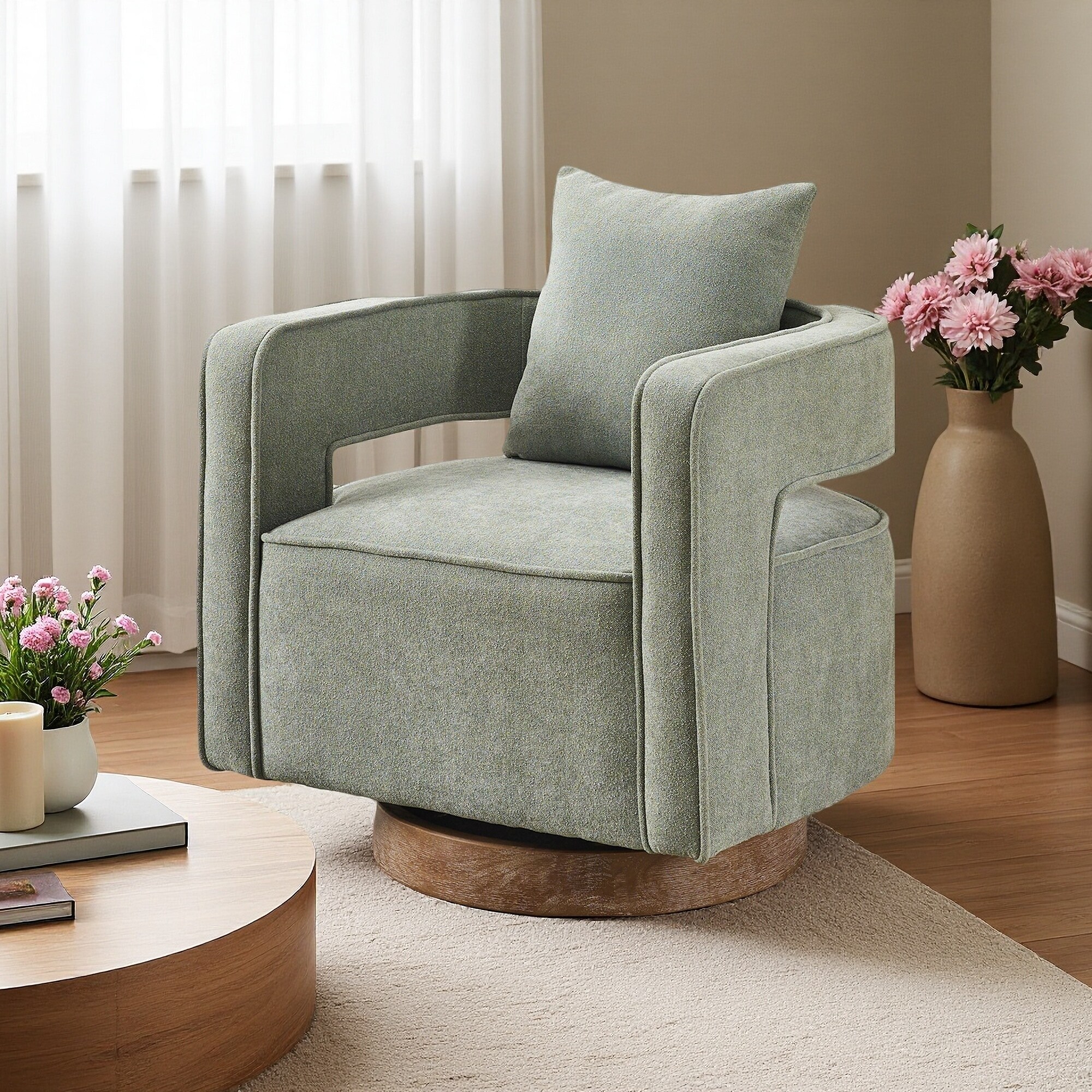 29.1" Linen Blend Swivel Accent Chair with Open Back & Cushion