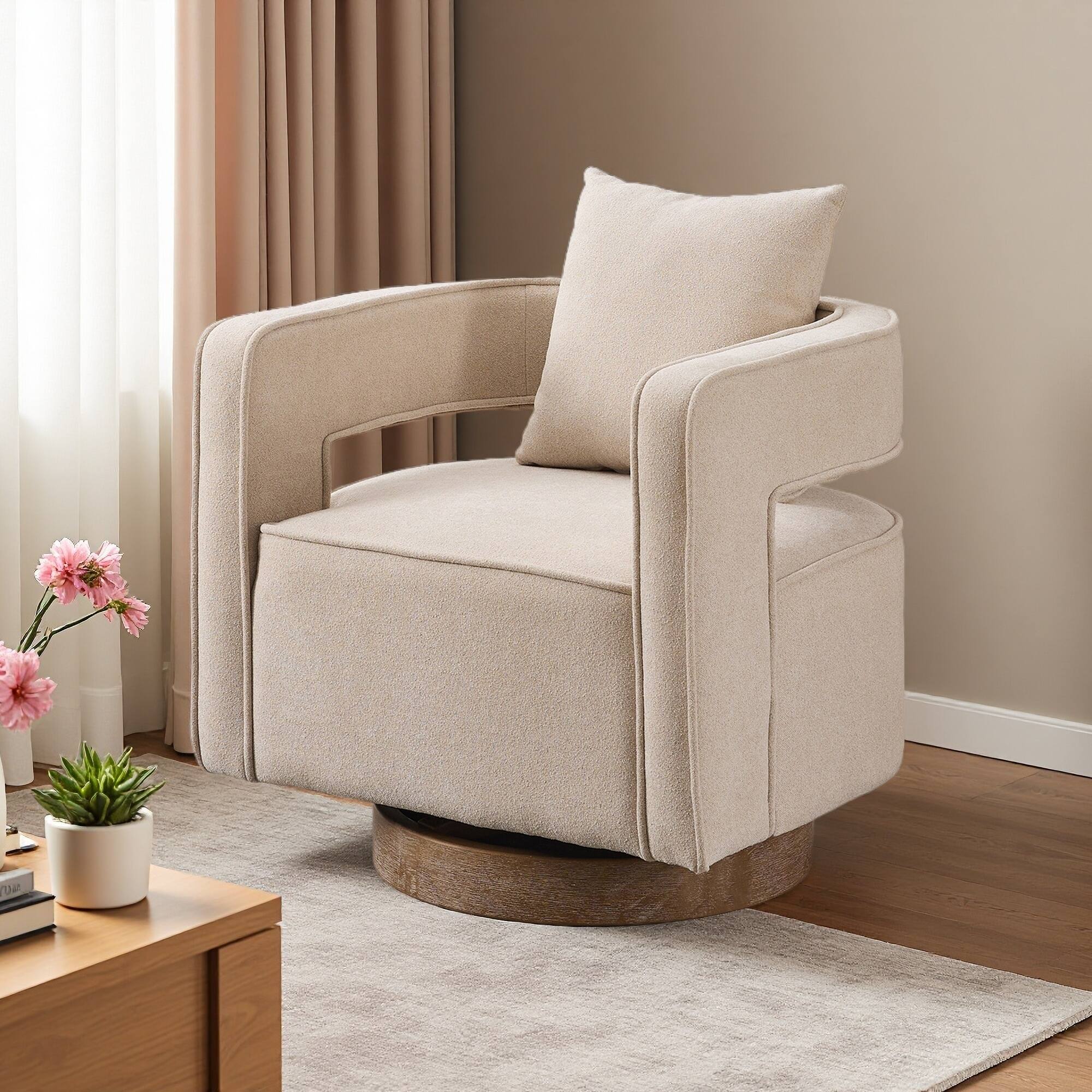 29.1" Linen Blend Swivel Accent Chair with Open Back & Cushion