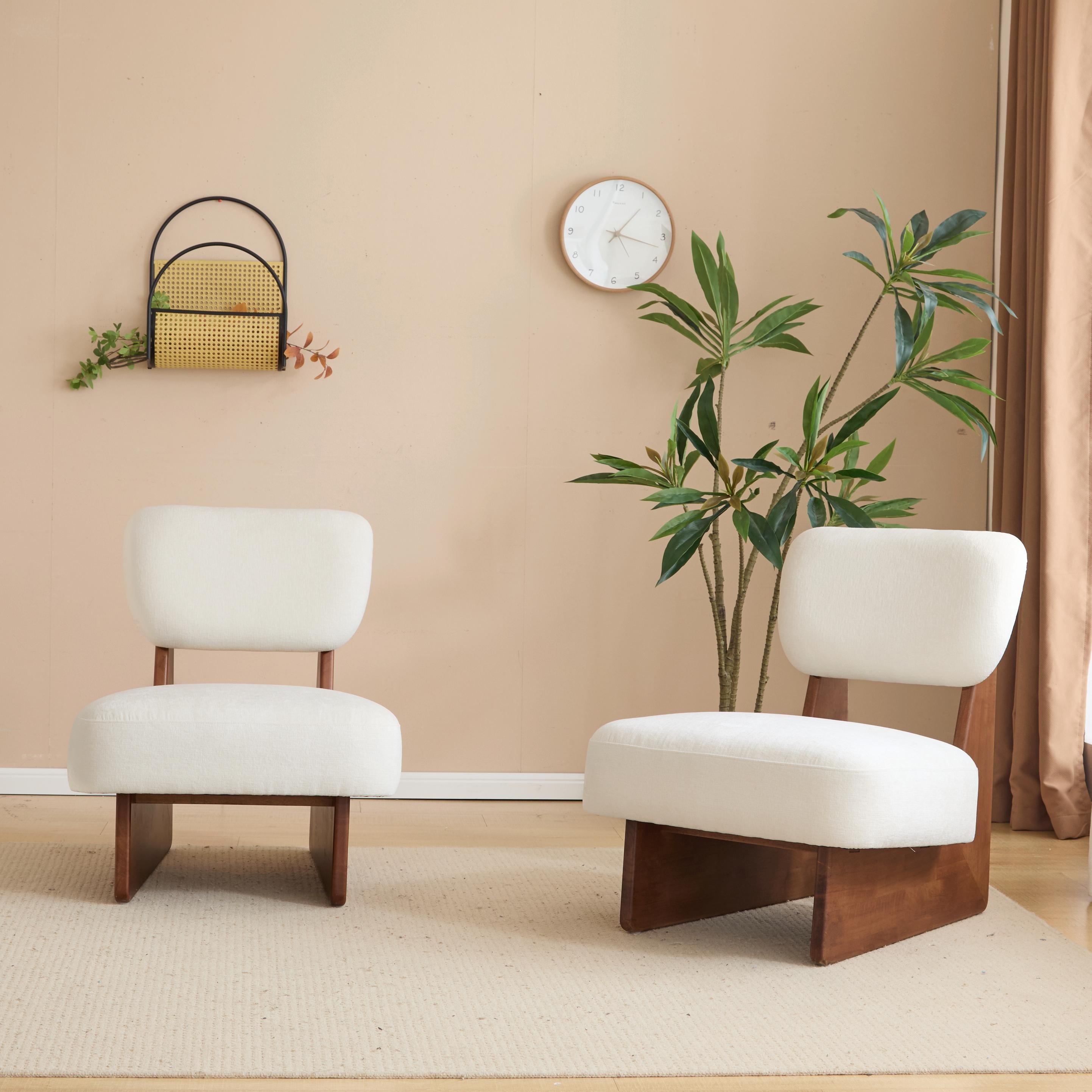 Modern Beige Lounge Chair with Walnut Base (Set of 2) - Set of 2