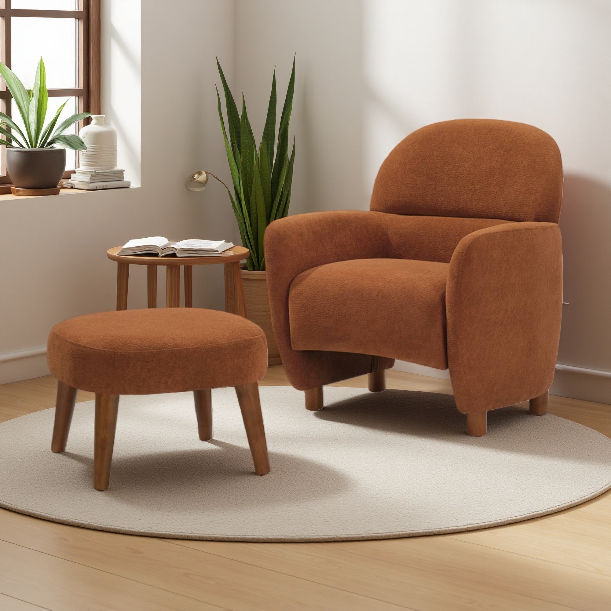 Fabric Upholstered Leisure Lounge Chair with Footrest Ottoman