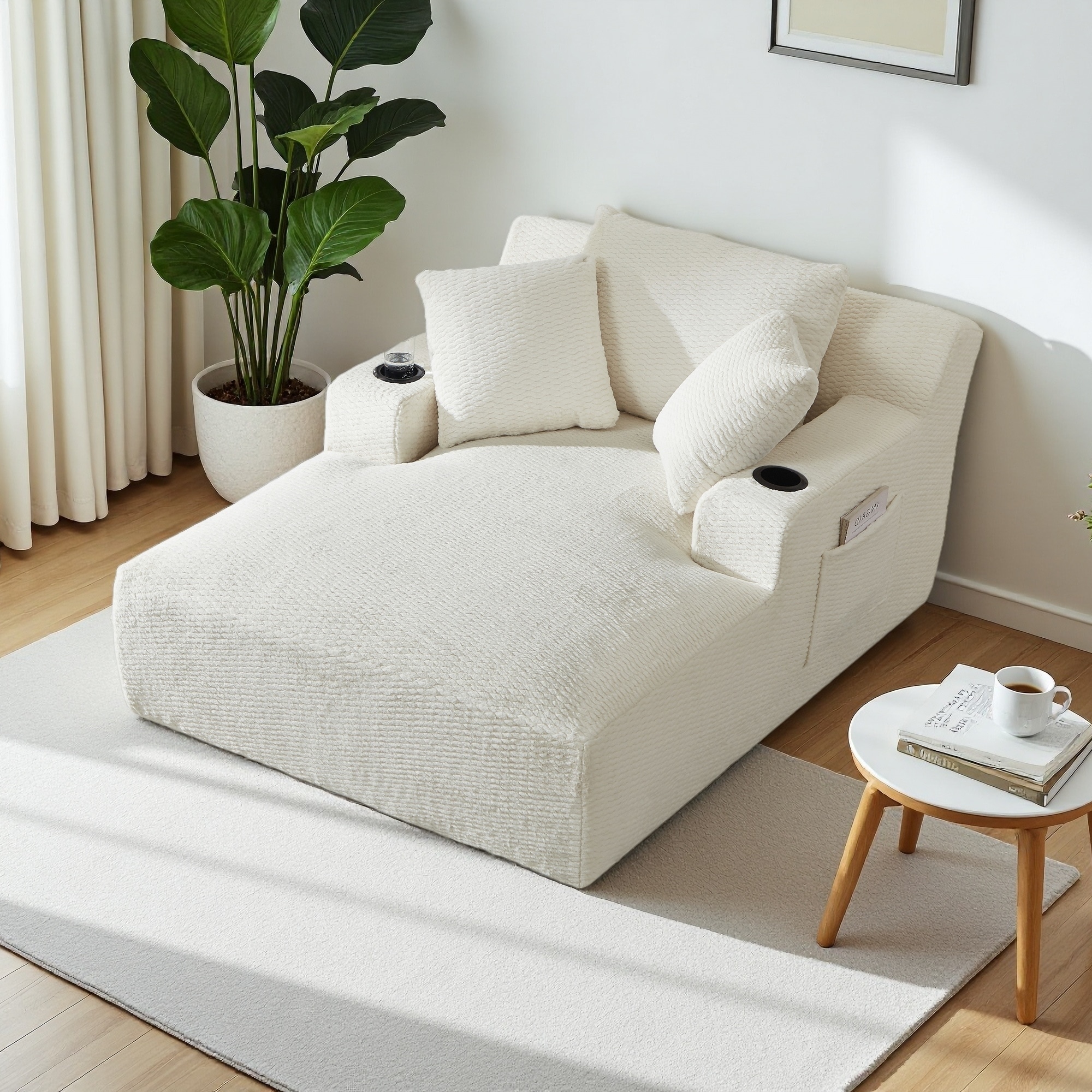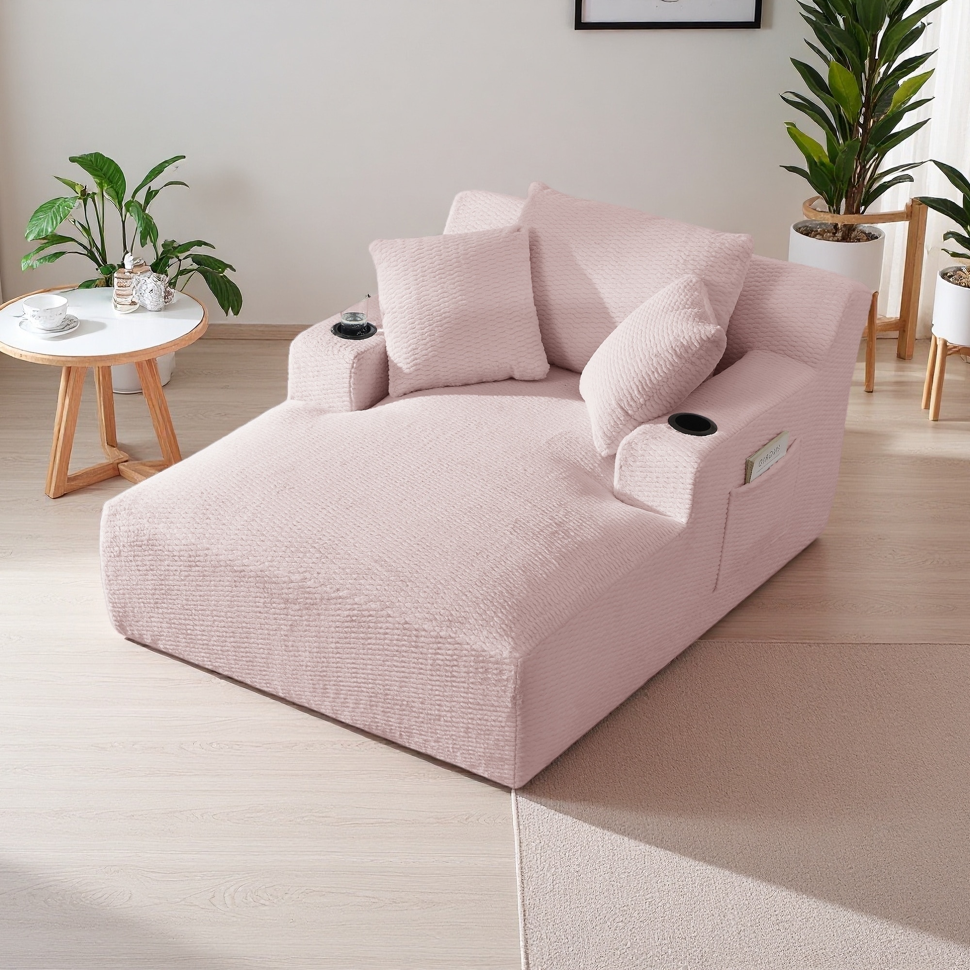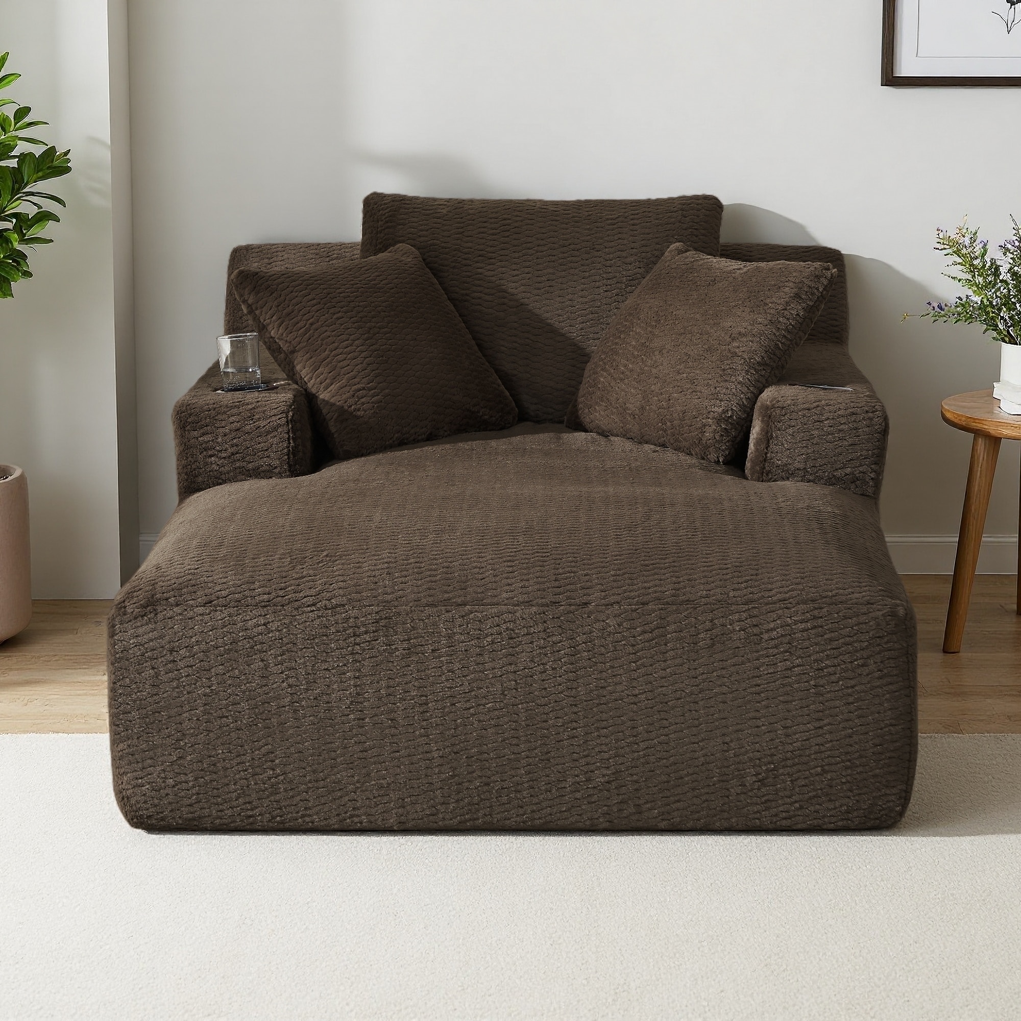 Symphony 67"W Corduroy Oversized Sofa Chaise Lounge Chair with Cupholders and USB Charging Port