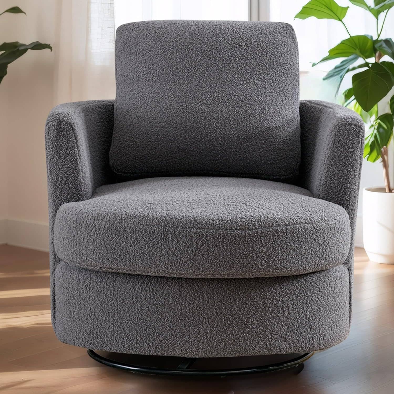 Swivel Barrel Chair Upholstered Living Room Chair,Boucle,Grey