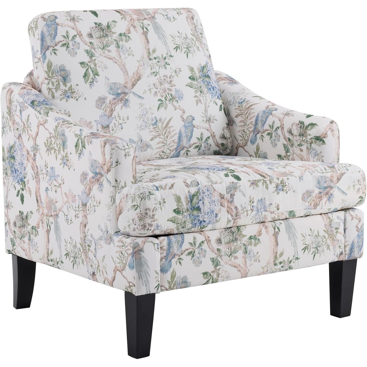 Floral Upholstered Reading Armchair with Wood Legs, Mid-Century Style for Home or Office