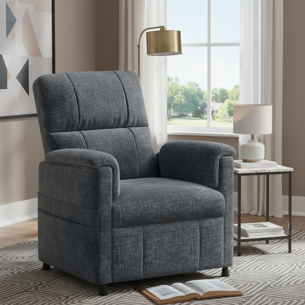 Power Recliner Chair with Remote, Side Pockets, and Adjustable Footrest for Home Theater, Living Room, or RV