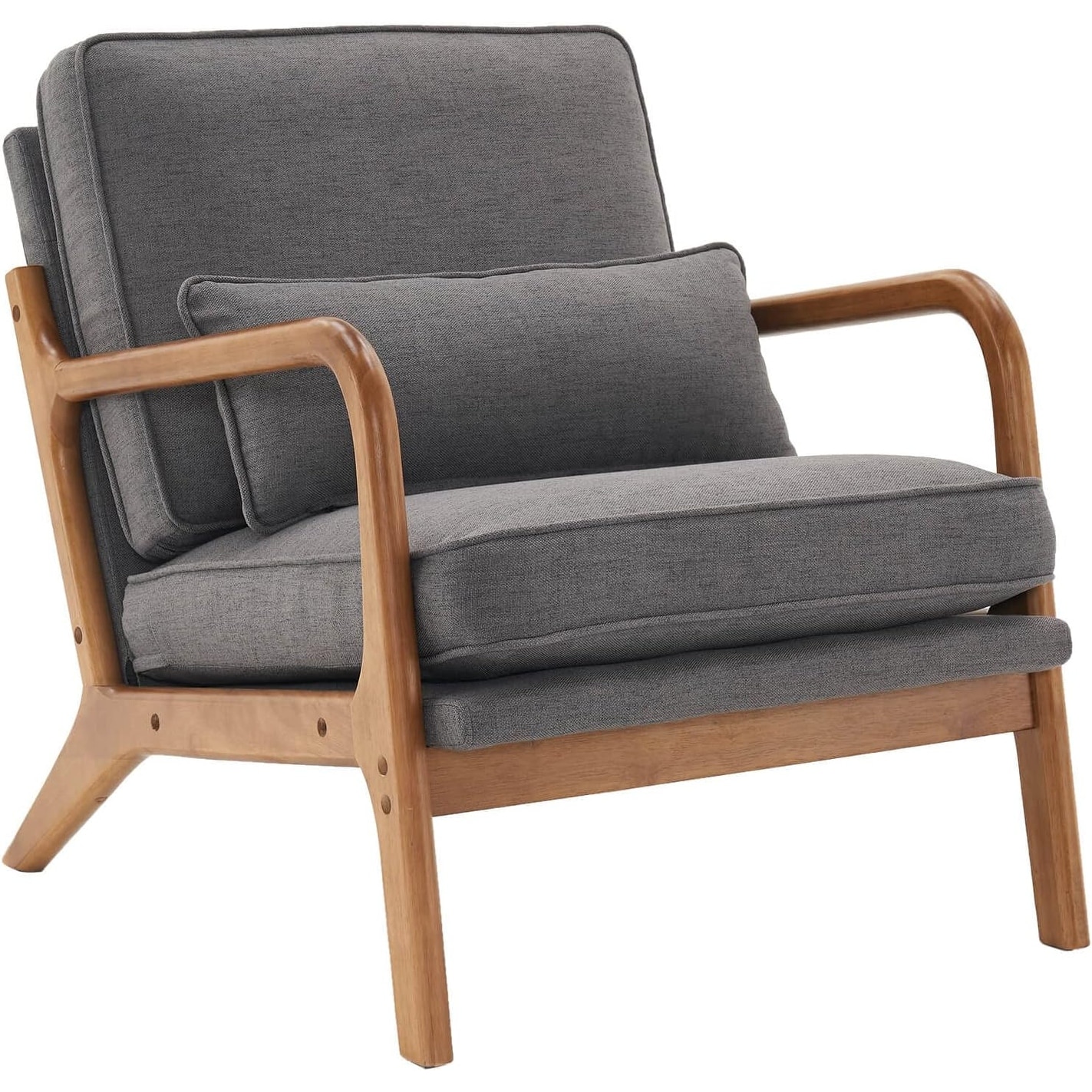 Single Lounge Chair, Modern Accent Sofa Chairs, Linen Upholstered Seat with Back Cushion and Pillow for Living Room (Dark-Grey)