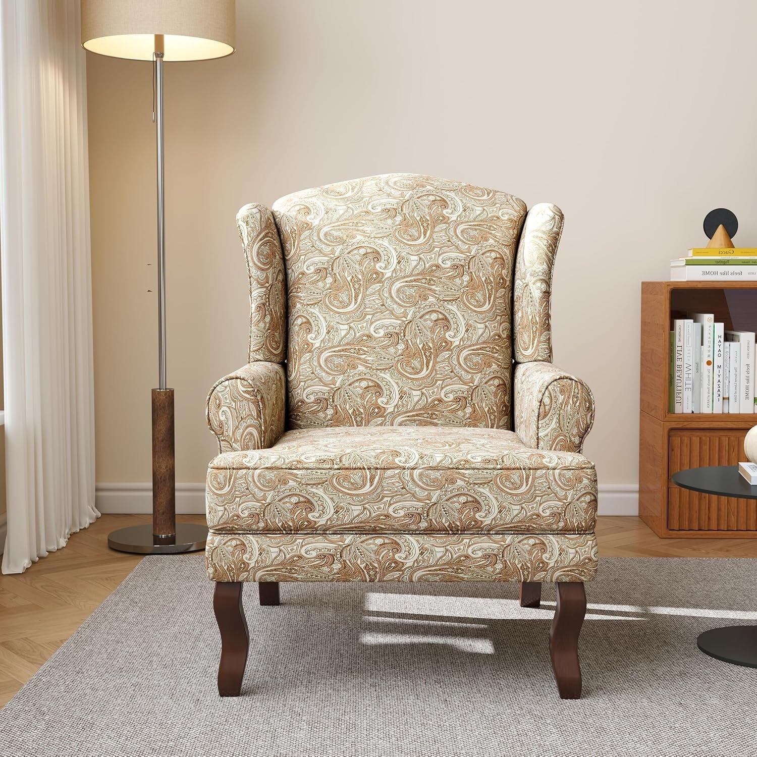 Floral Accent Chair with Solid Wood Legs, Upholstered Armchair for Living Room - Sand Paisley