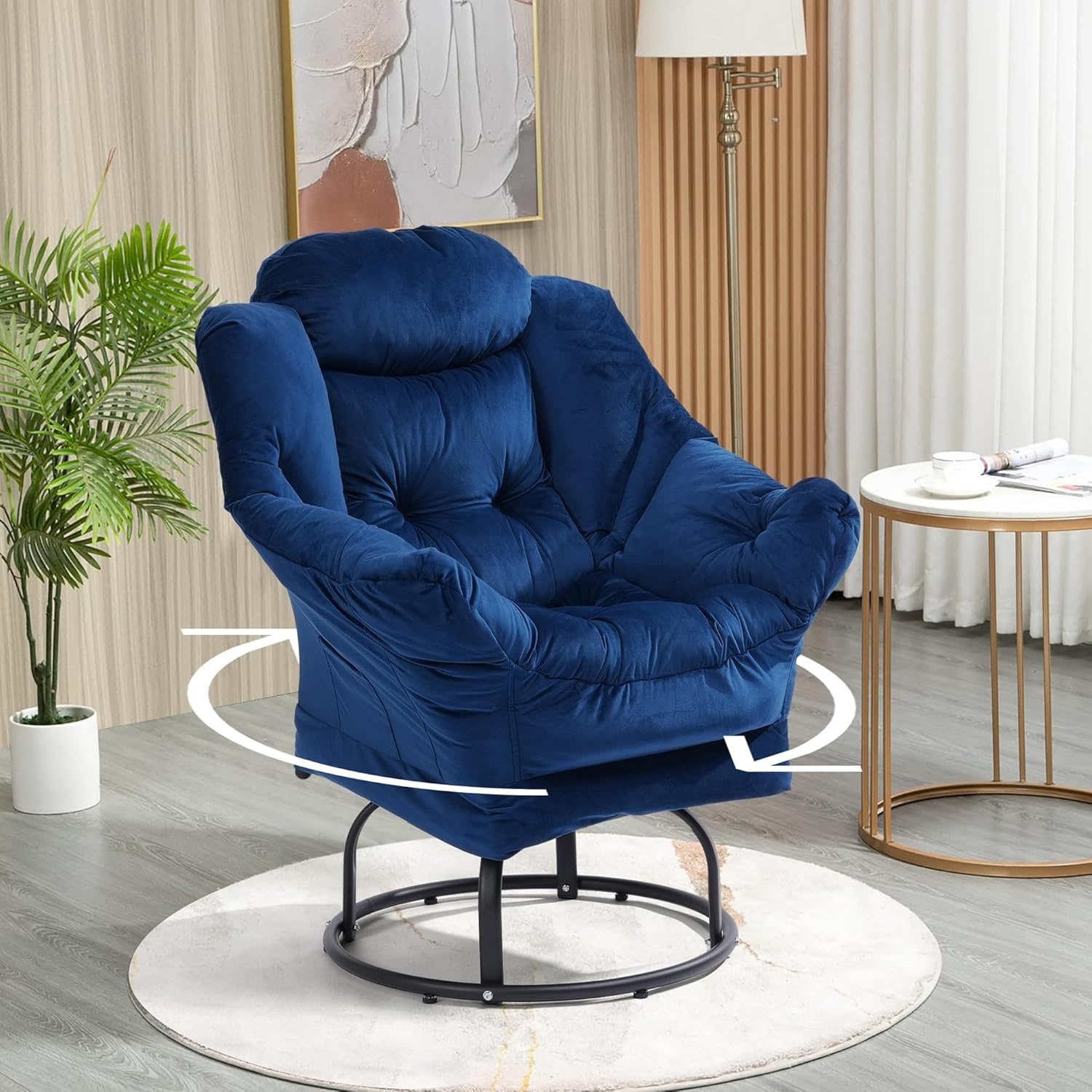 Swivel Lounge Chair with Soft Suede Fabric, Steel Frame and Side Pocket, 500lbs Capacity