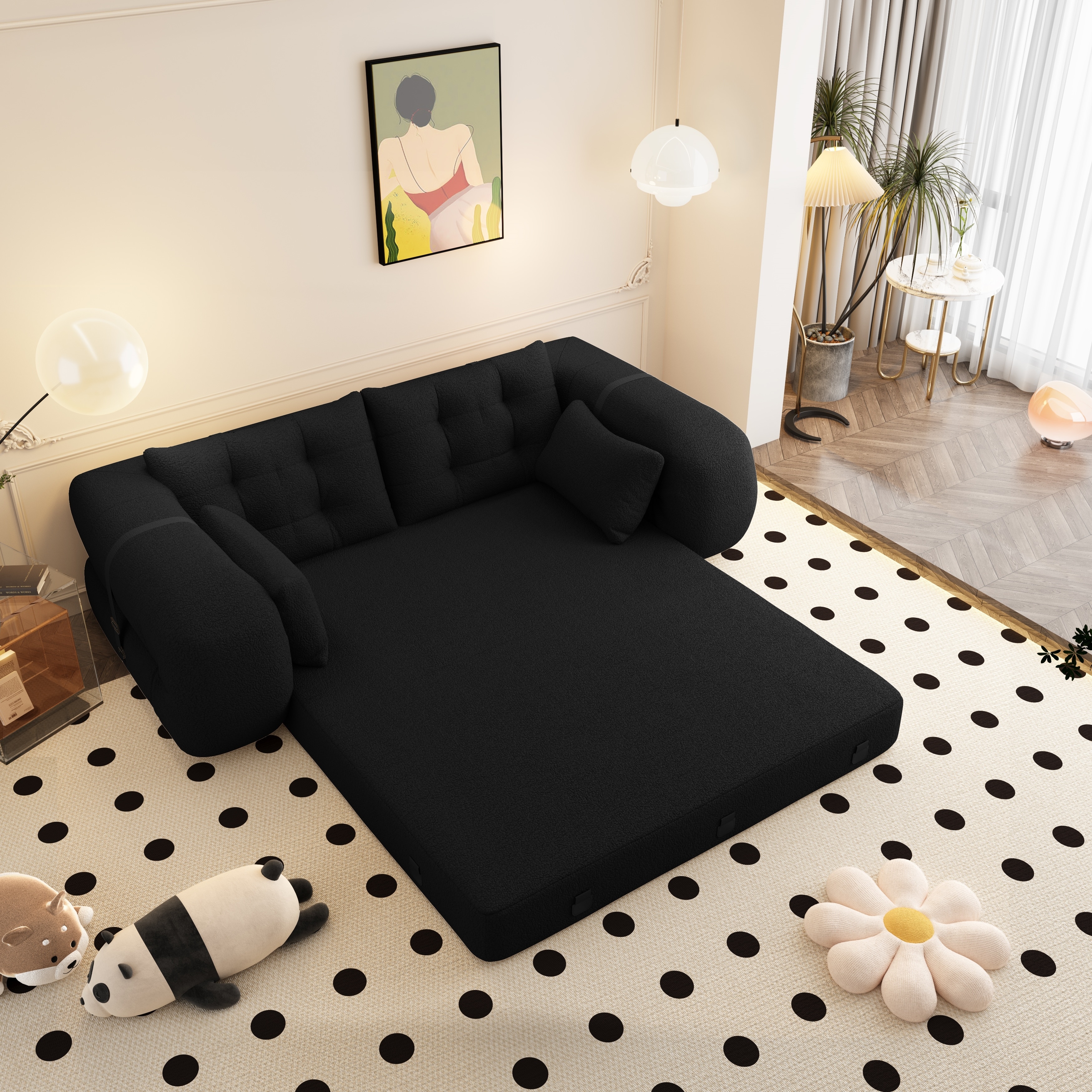78.7" Foldable Sofa Bed Couch, Convertible Loveseat Sleeper Chair, Upholstered Teddy Fabric Floor Sofa with Pillow