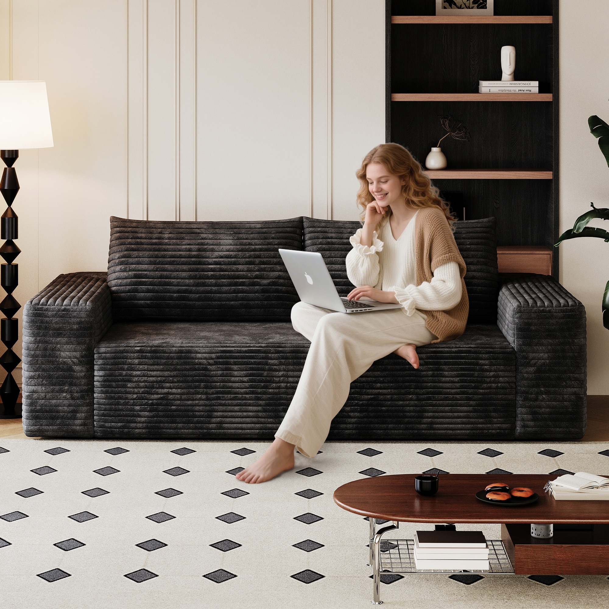 71" Boneless Loveseat Sofa - Cloud Couch with Lumbar Support, Comfy Deep Seat - Fabric Floor Sofa, for Living Room, Bedroom