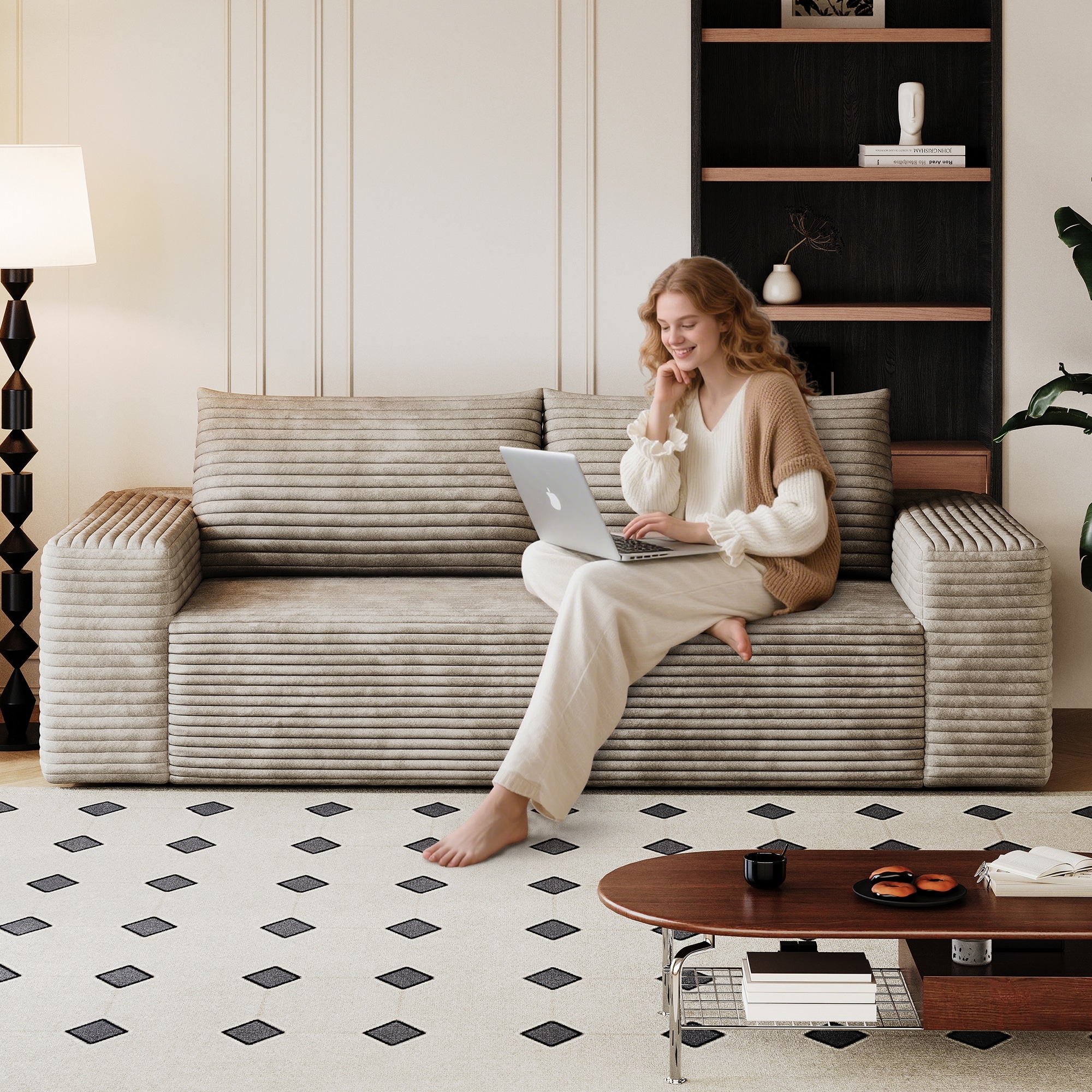 Multifunctional Pull-Out Sofa Bed, Convertible Sleeper Sofa Bed with Storage Bag, Upholstered Armsofa for Bedroom