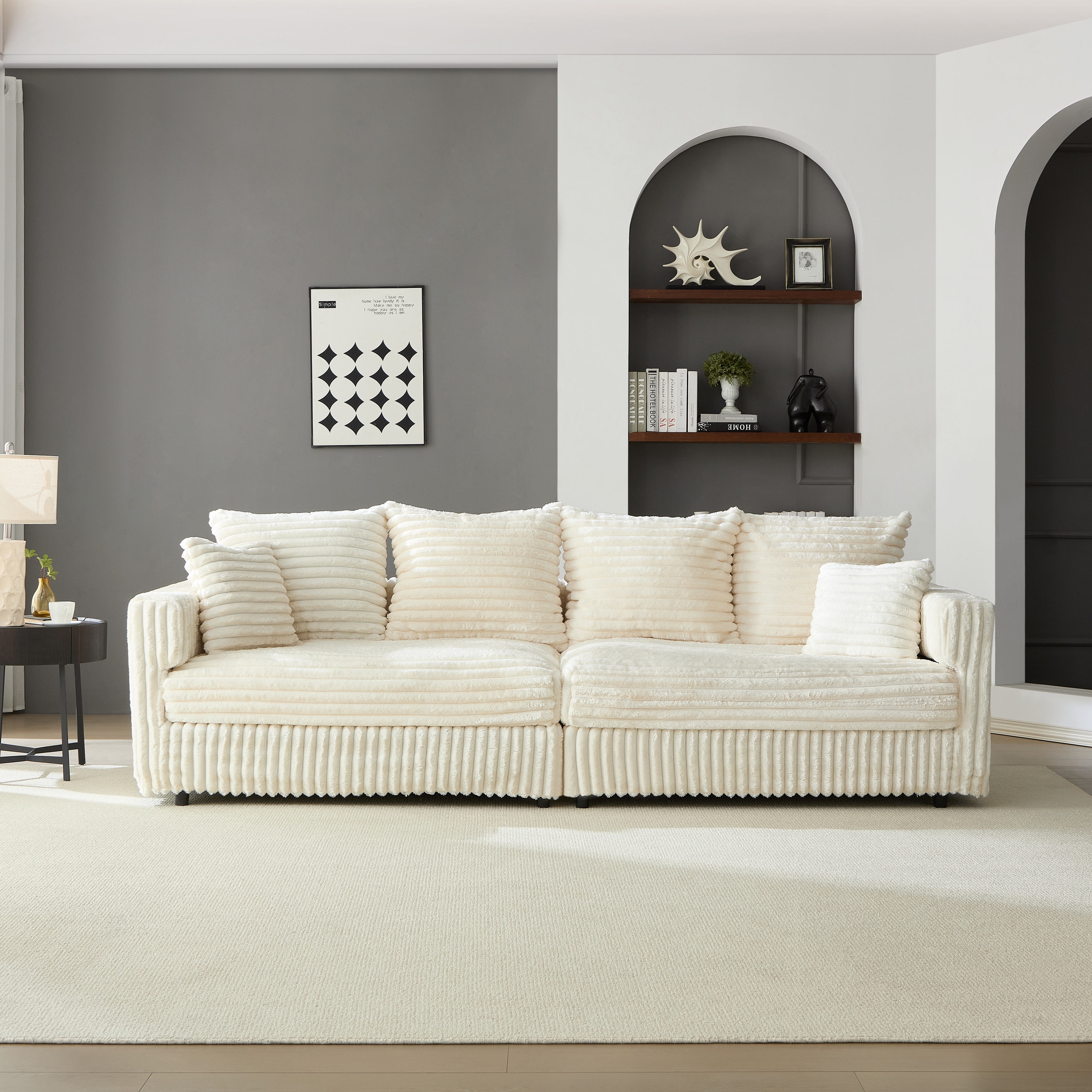 Modern Comfy Upholstered Double Sofa, 4-Seat Cloud Couch, Deep Seat Corduroy Sofa w/Soft Pillows, Convertible Sofa Lounge Chair