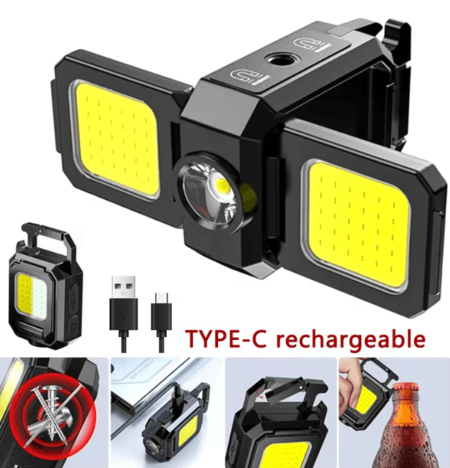 FlexBeam Mini Flashlight Keychain USB Rechargeable COB Work Light h
