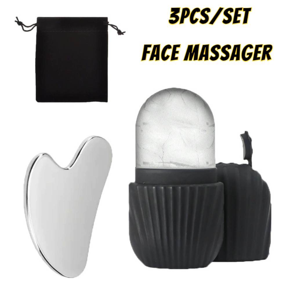 Ice Face Roller With Stainless Steel Gua Sha Board Set, Face Massage Roller & Facial Massager For Lifting, Firming 3pcs Set Purple