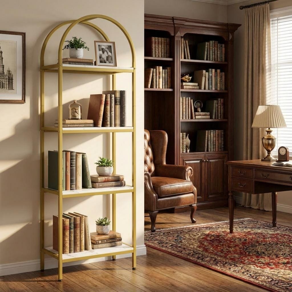 Arched Bookshelf – 4 Tier/5 Tier Industrial Open Bookcase, Modern Freestanding Display Shelving Unit with Metal Frame