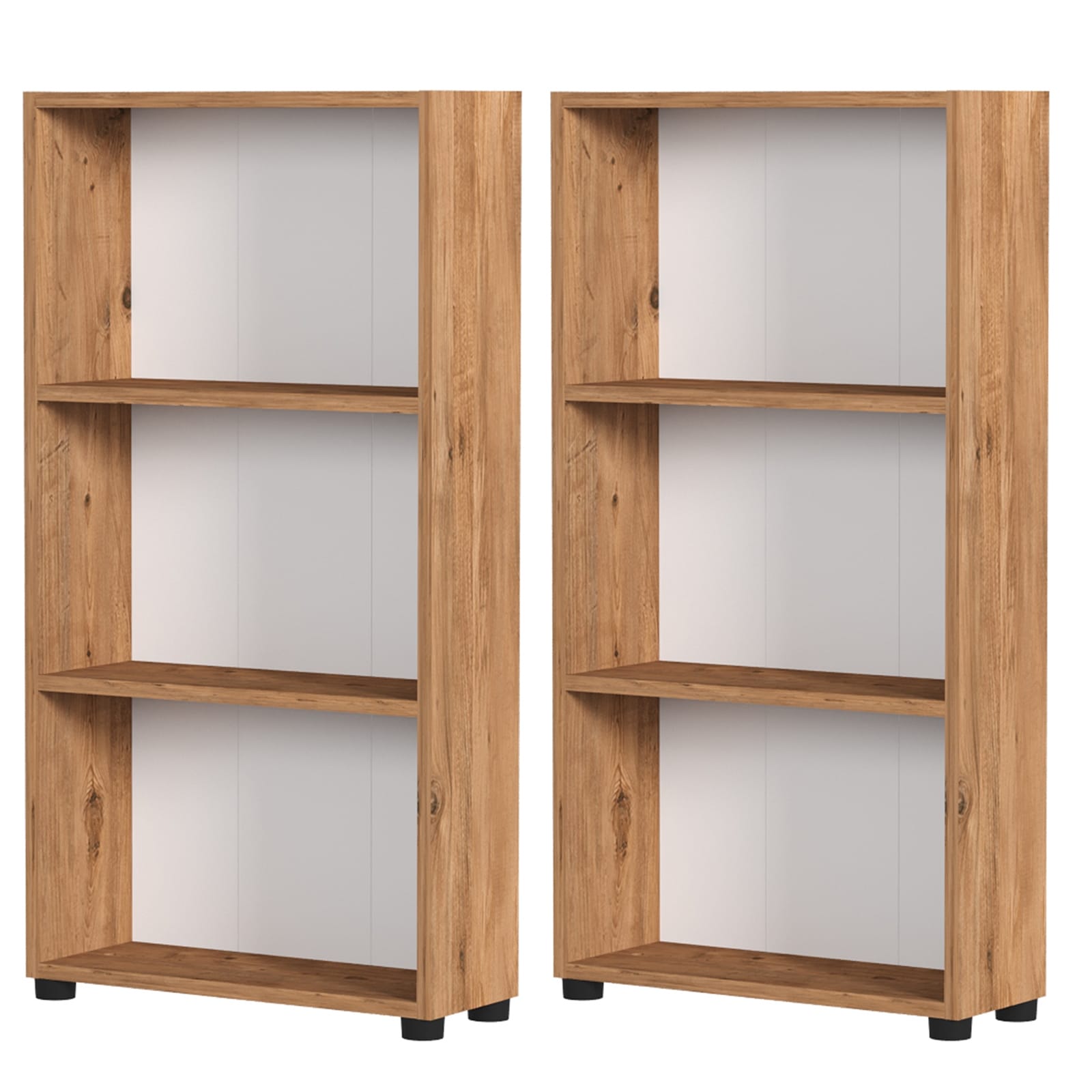 Gymax 3 Tier Bookshelf Wooden Bookcase w/ Dual Anti-Tipping Kits Open
