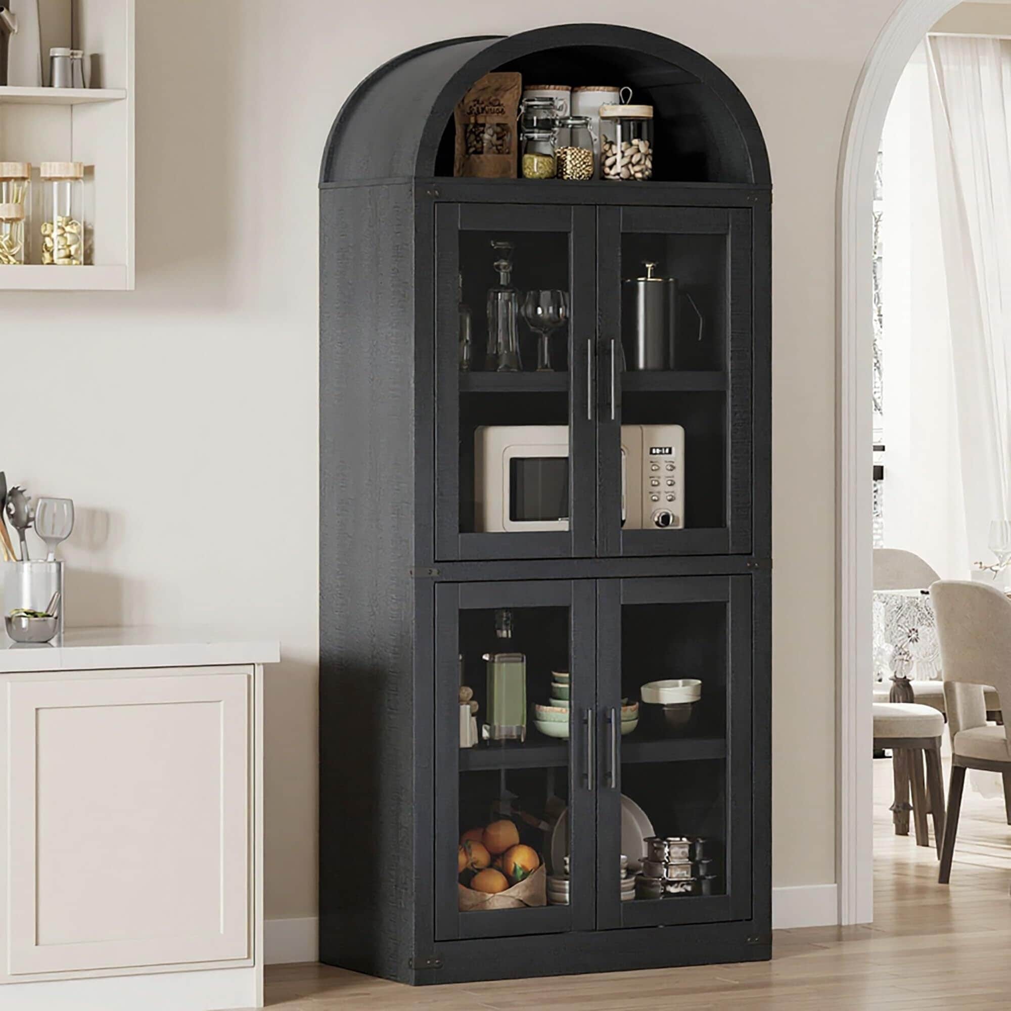 71" Arched Farmhouse Bookshelf with Glass Doors & Drawers, Black