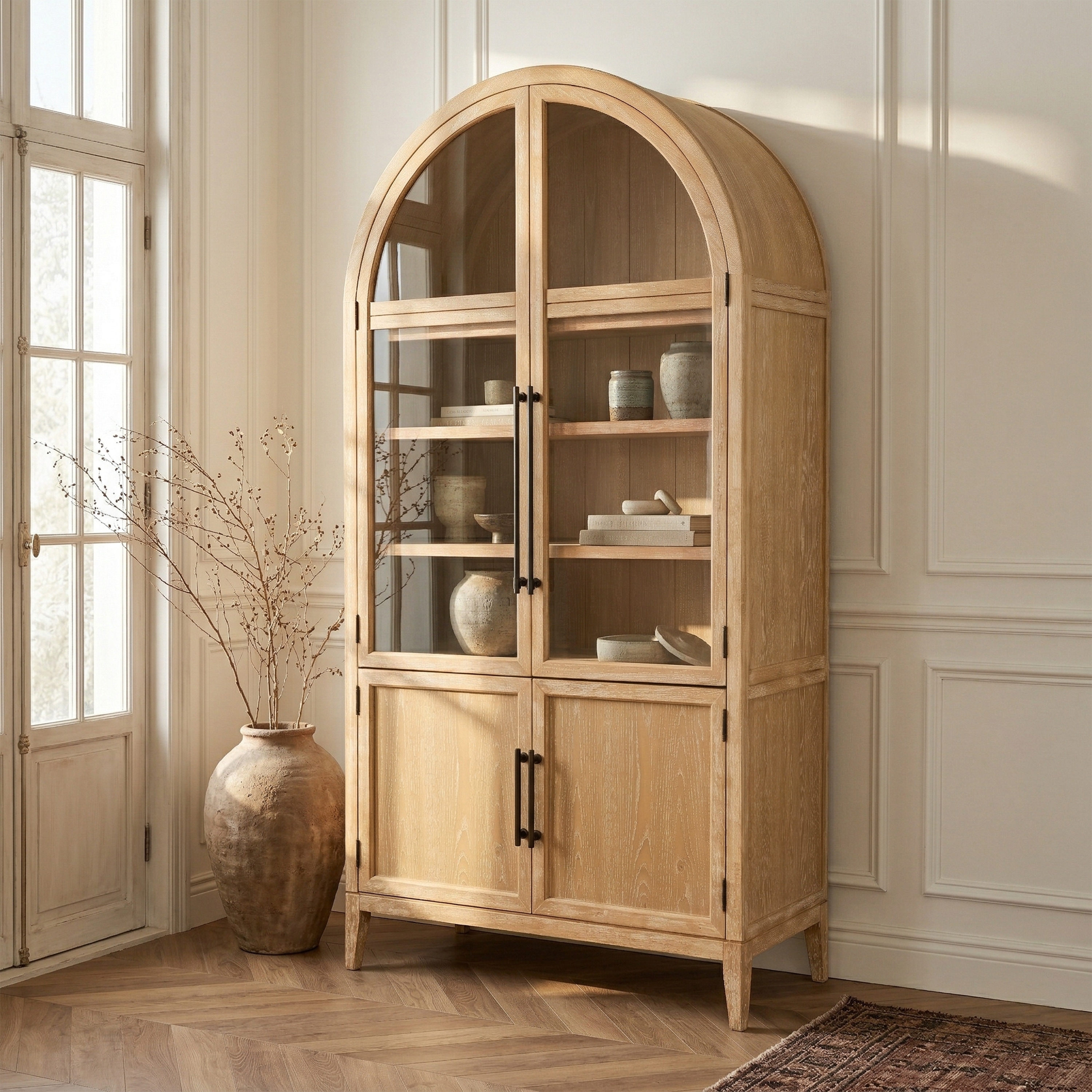 Furniture of America Lenn Modern Farmhouse Solid Wood 6-Shelf Bookcase with Glass Doors