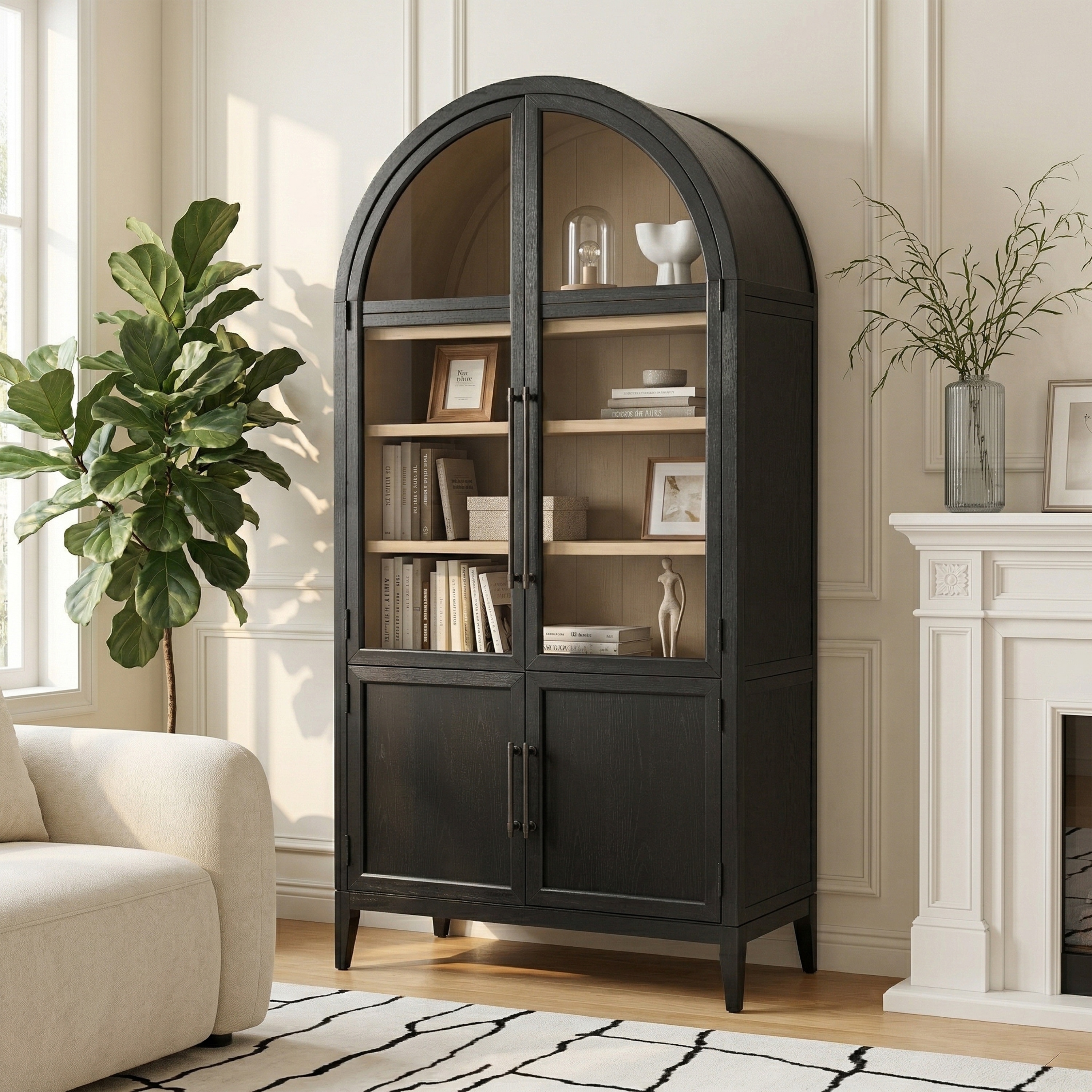 Walker Edison Modern Arched MDF Bookshelf Cabinet with Glass Doors