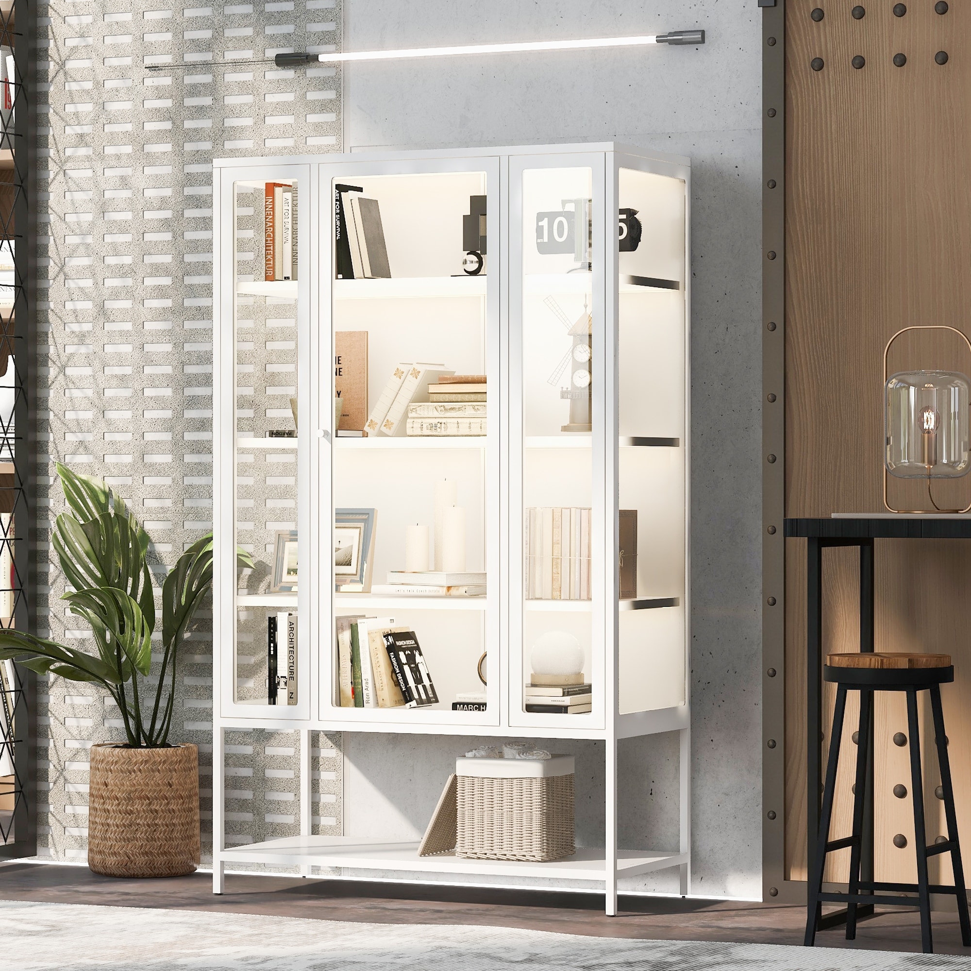67.25"H Iron Display Cabinet with Glass Door and LED Lights, Steel Curio Cabinet for Collectibles, 3-Sided Glass Display Case