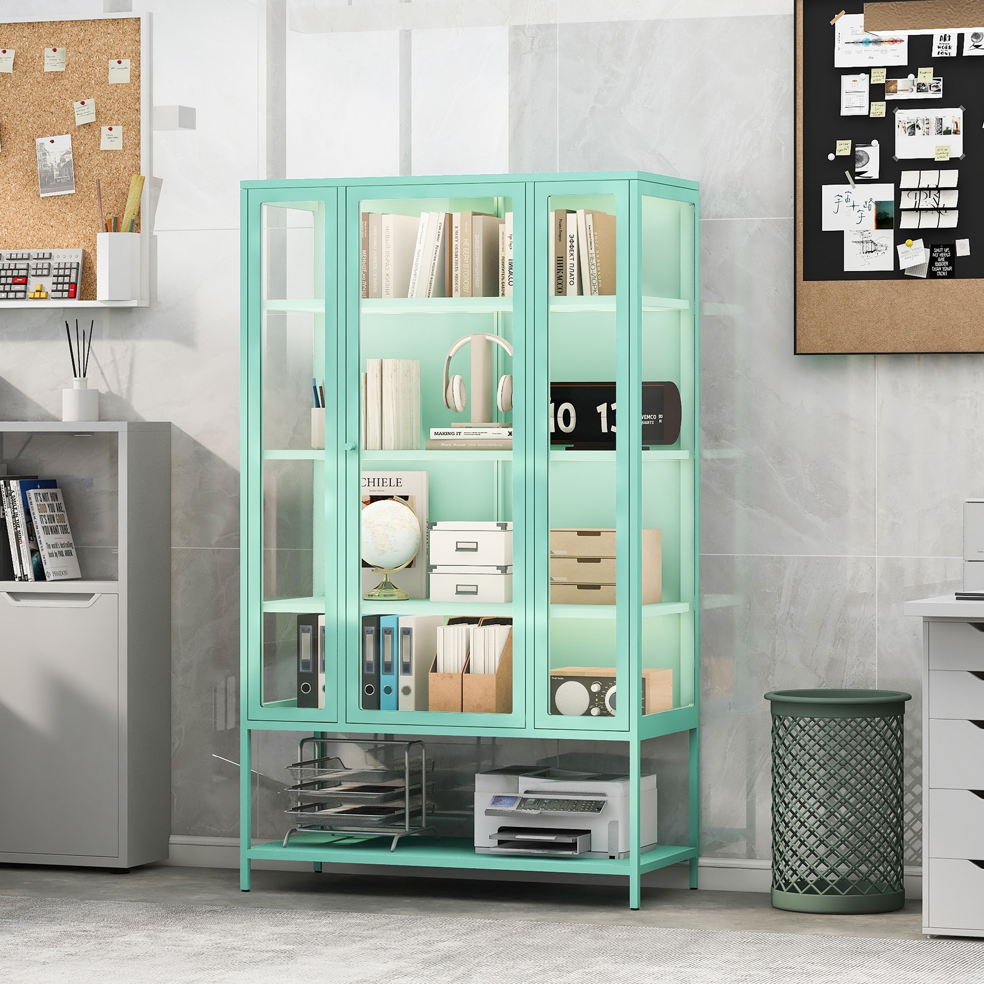 67.25"H Iron Display Cabinet with Glass Door and LED Lights, Steel Curio Cabinet for Collectibles, 3-Sided Glass Display Case