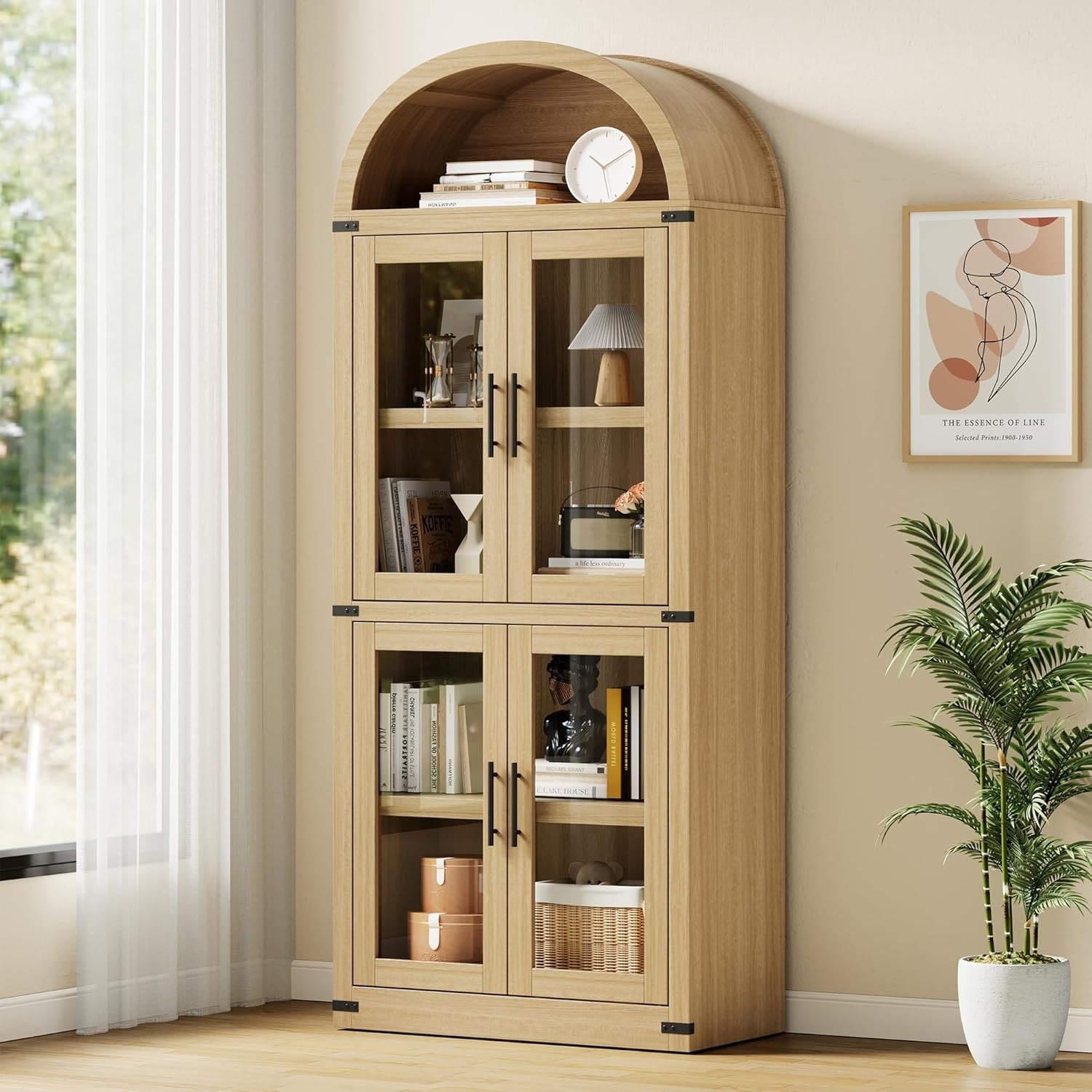 71.65" Arched Kitchen Pantry Cabinet w/ Glass Doors