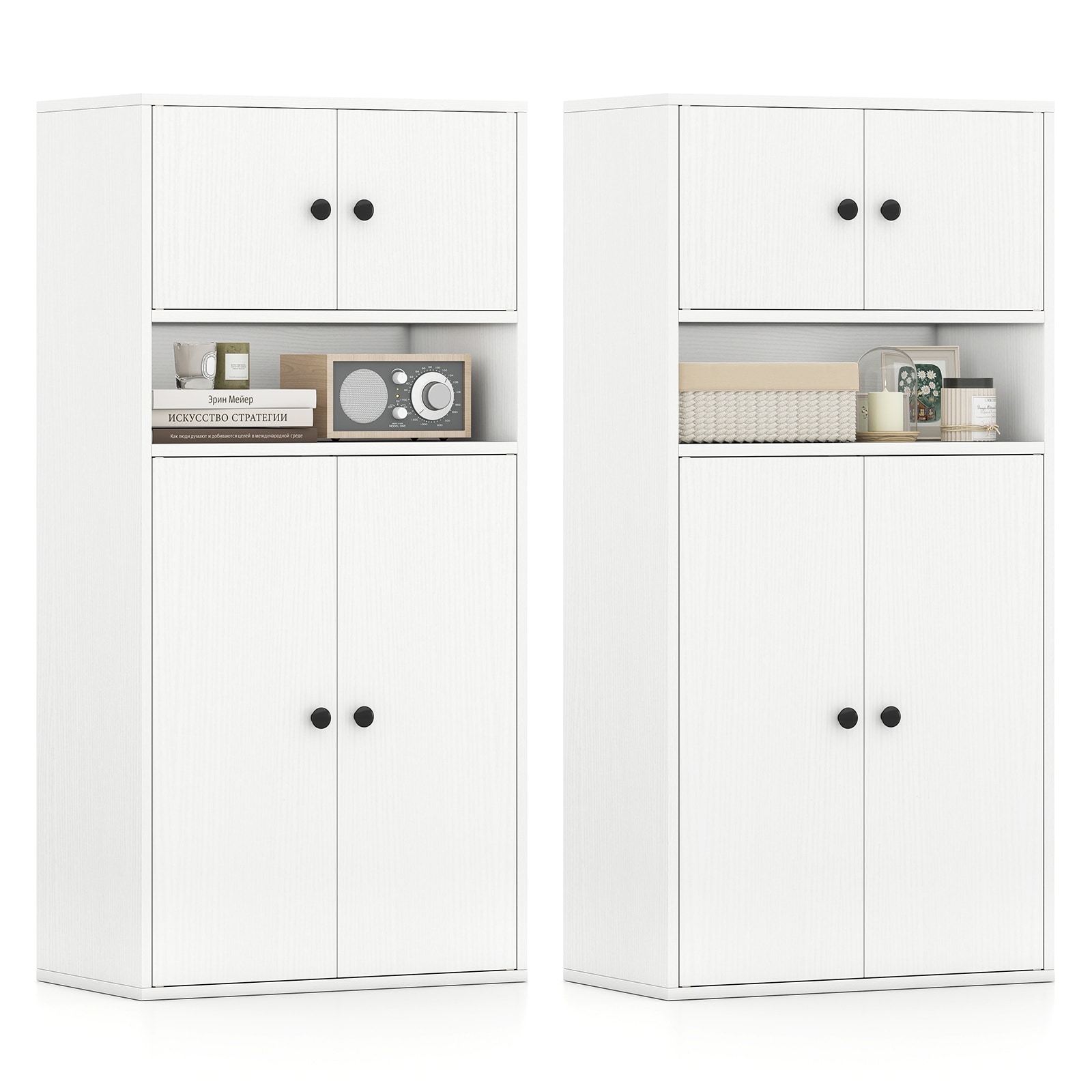 Gymax 2PCS 44'' Tall Bookshelf w/Doors & Adjustable Shelf for Study