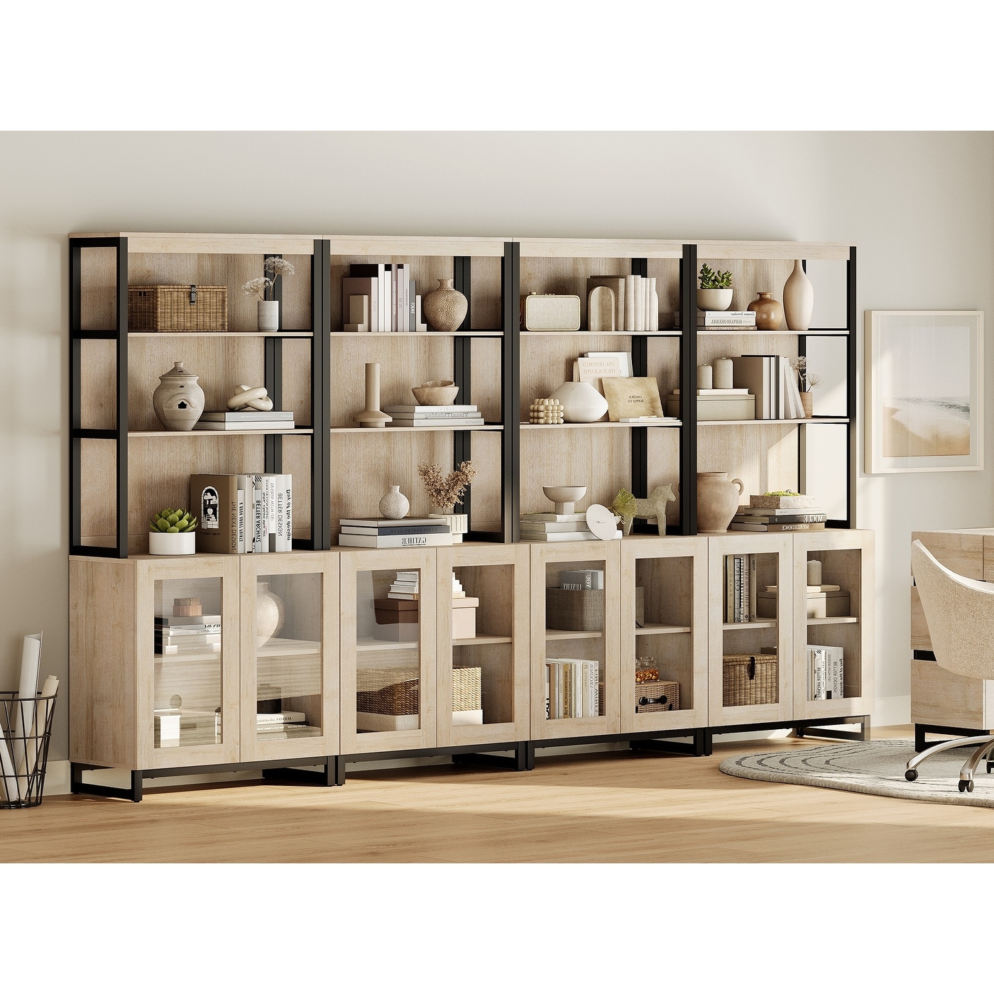 4 PCS Modern 72" Tall Bookcases with Glass Doors and Adjustable Shelves for Home Office, Living room.