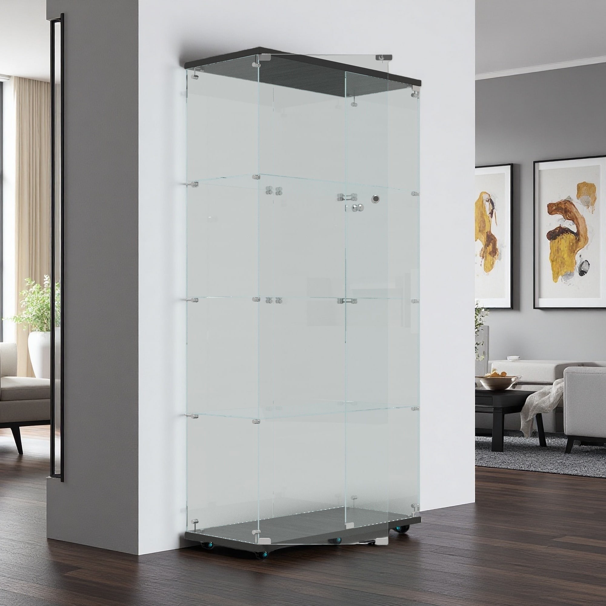 65.59"H Tempered Glass Display Cabinet, Wine Storage, Bluetooth LED, Lockable Door