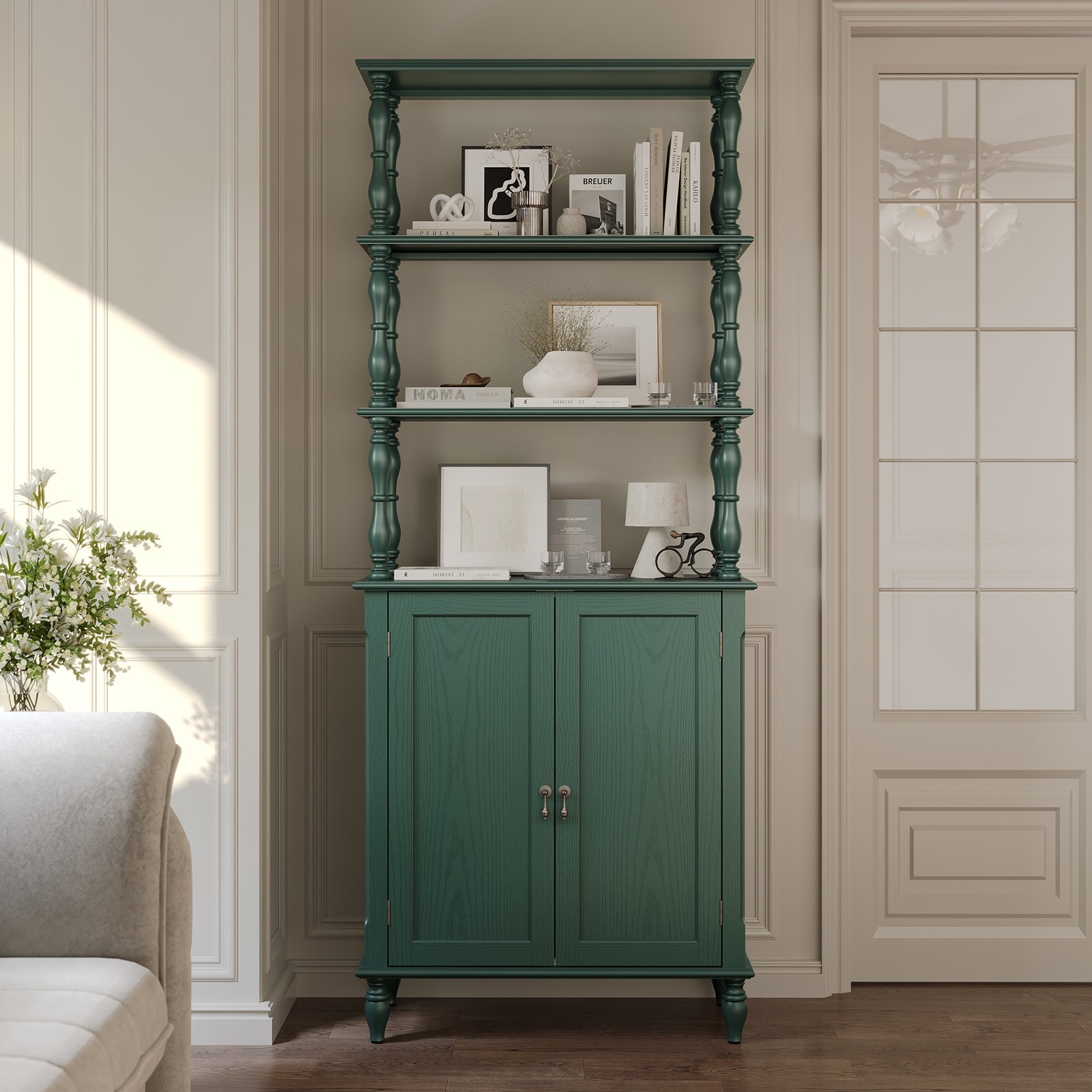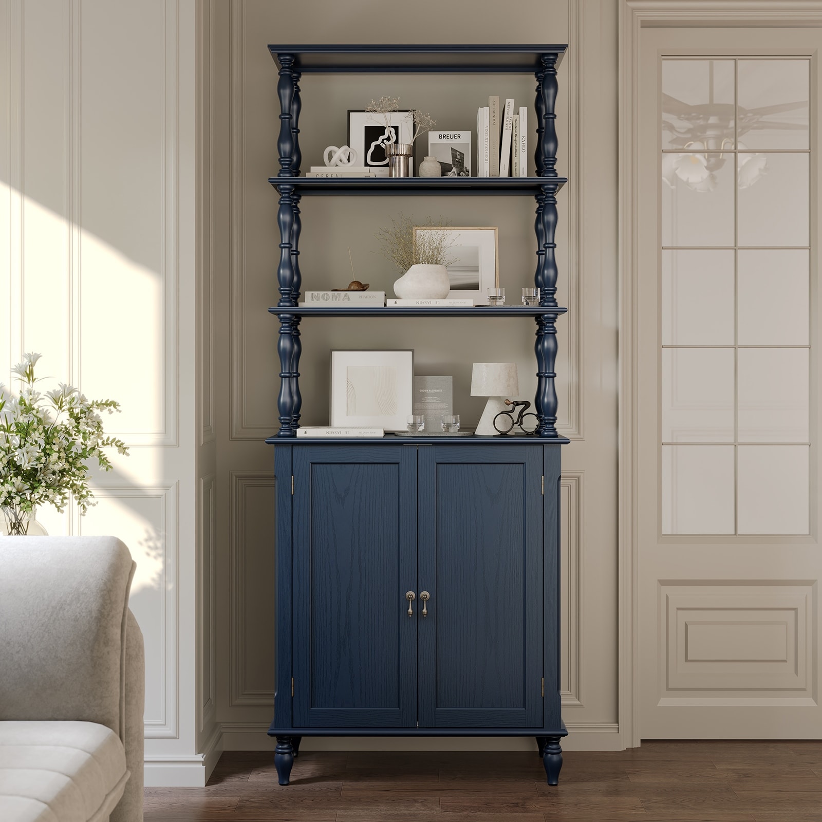 77" Tall Bookshelf with Cabinet, Freestanding Storage Cabinet