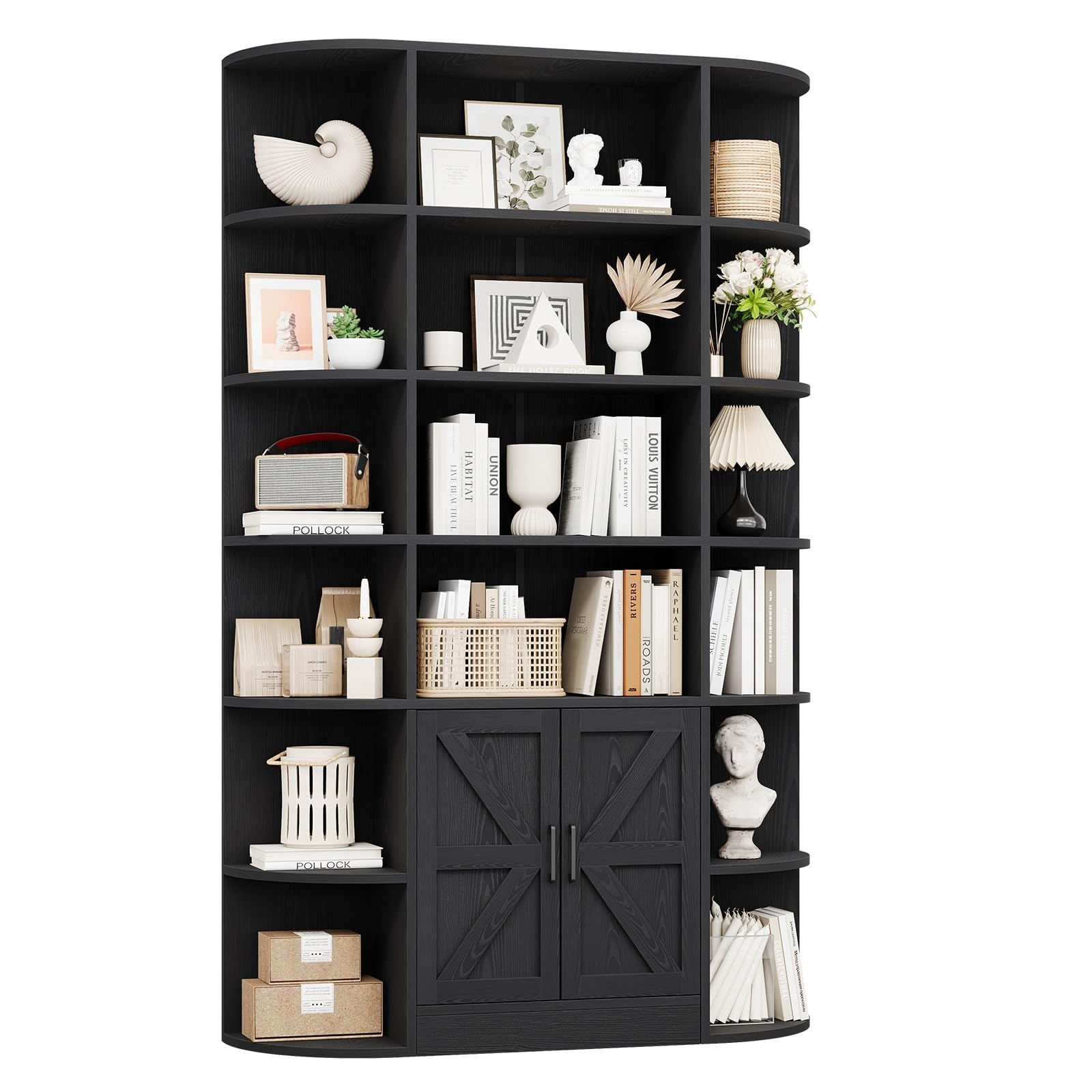 75" 6-Tier Wide Modern Bookcase w/ Cabinet & Doors