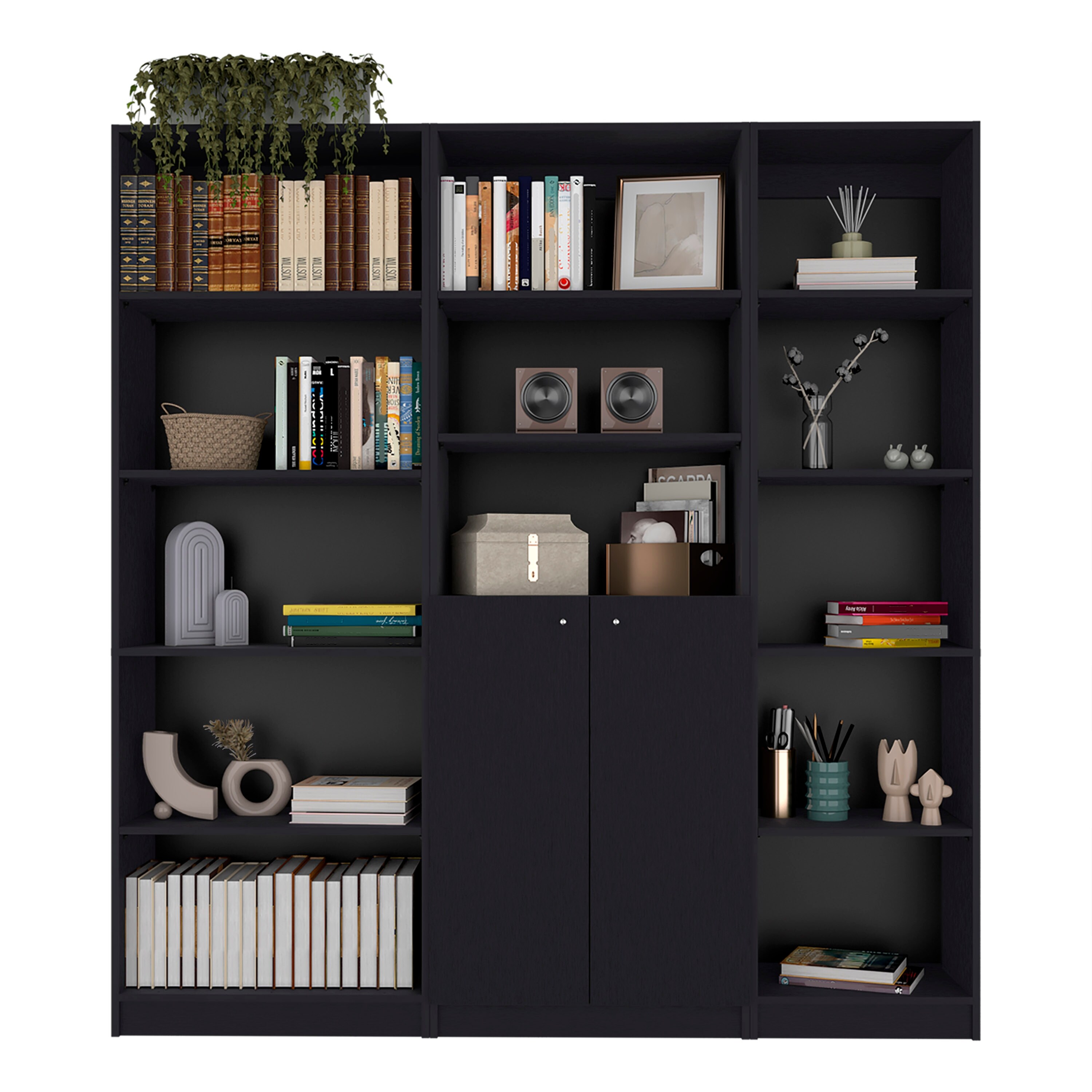 3 Piece Home Bookcase Set, 67" Wide With 13 Shelves And Two-Door Cabinet, Living Room Set