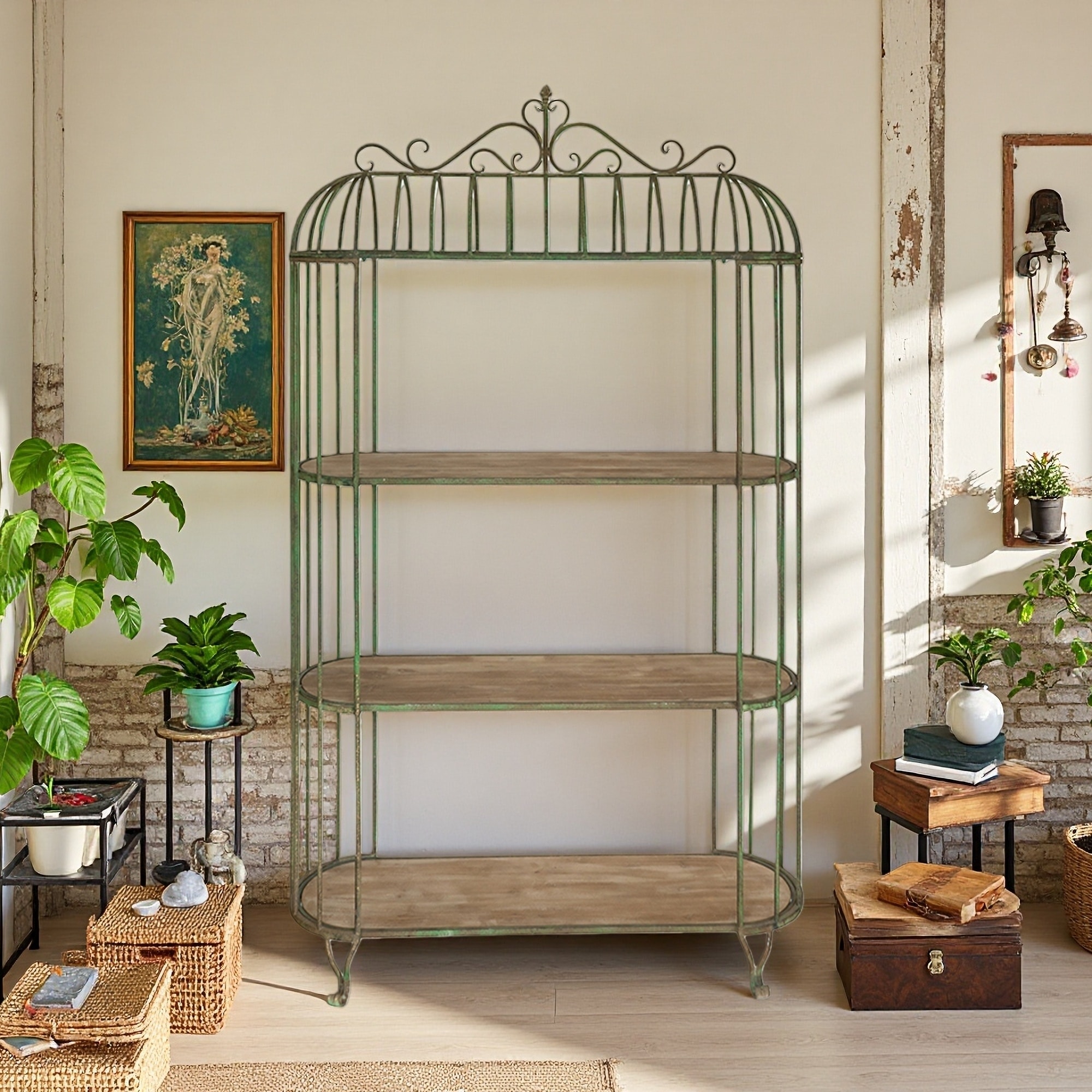 80"H Vintage Iron Shelving, 3-Tier Wood, Rustic Farmhouse or Industrial Style