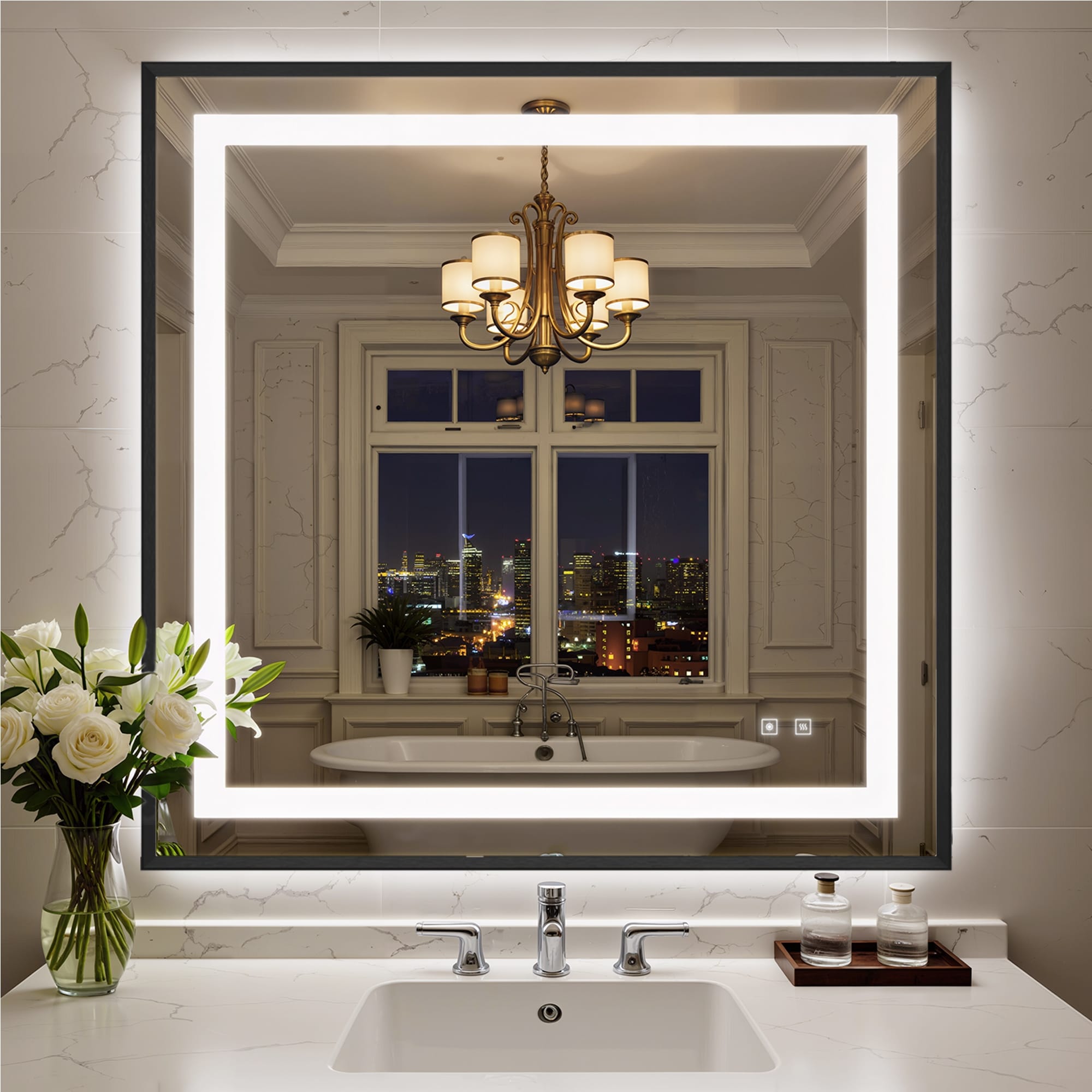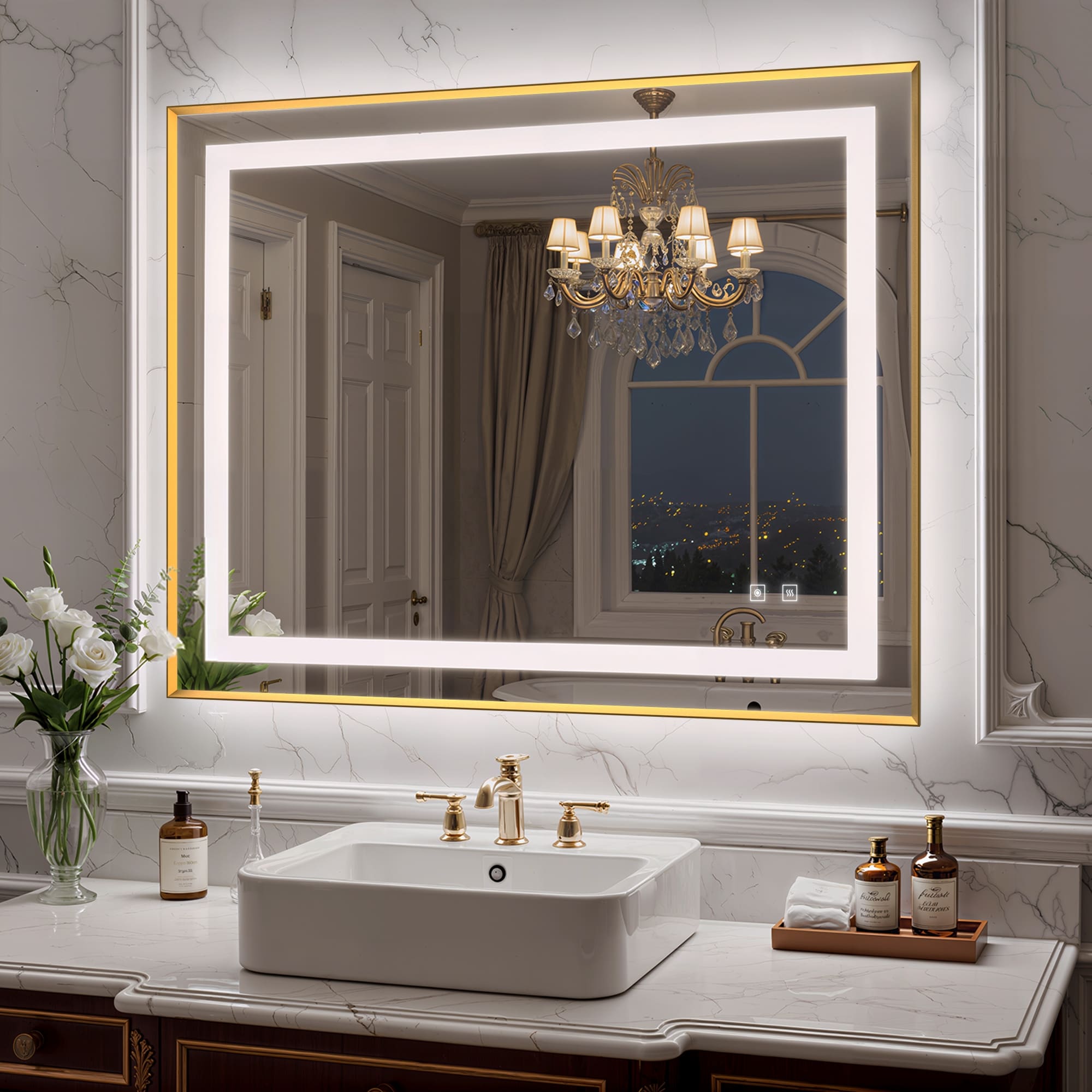 Smart Anti-Fog LED Bathroom Mirror 3-Color Dimmable Lighting Brushed Aluminum Frame