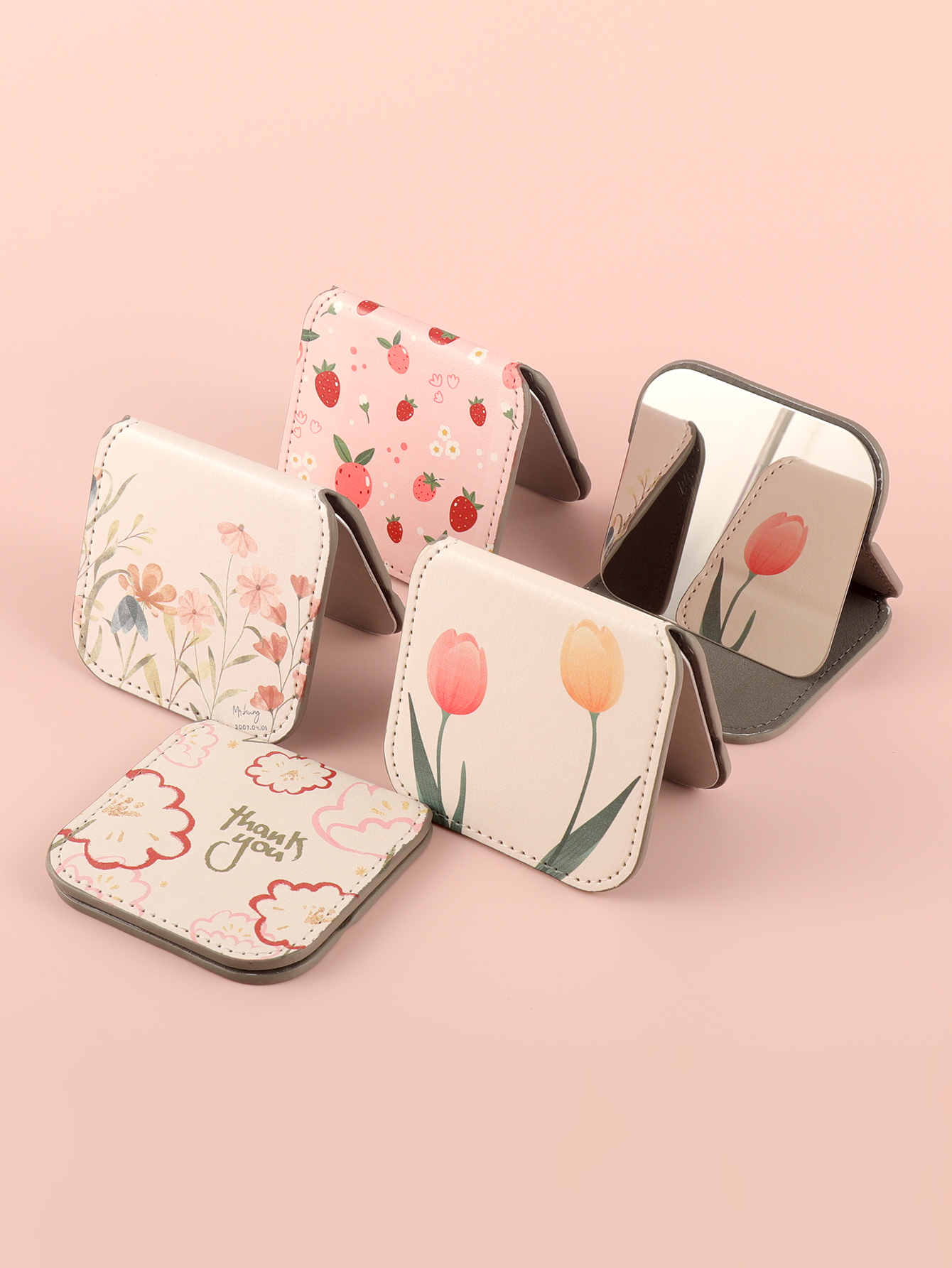 Portable Square Stainless Steel Makeup Mirror, Printed Pattern, Anti Fall, Dirt Resistant, Desktop Handheld Pocket a