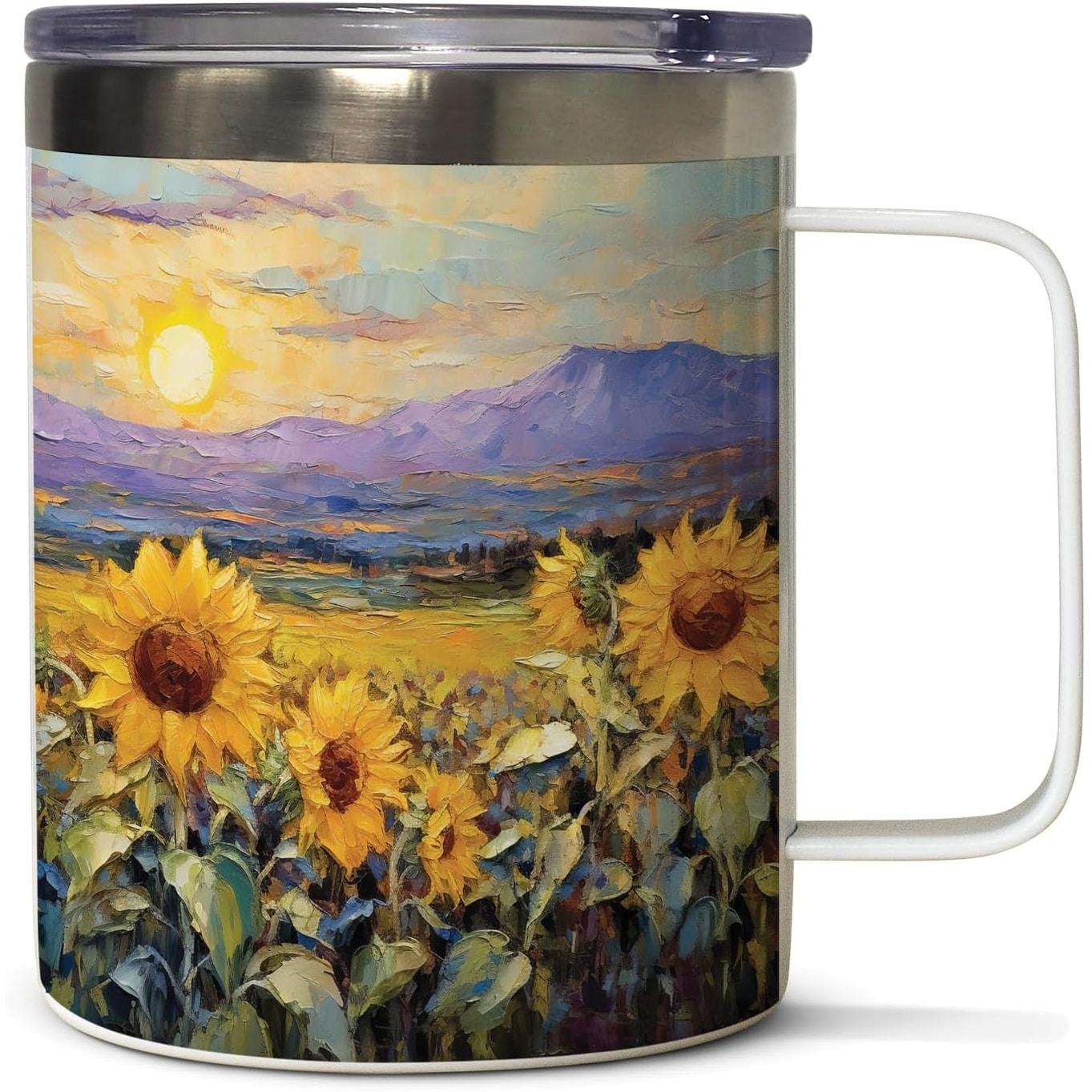 Field Of Sunflowers Double Wall Stainless Steel Mug with Lid 12 oz. Manufactured in the USA