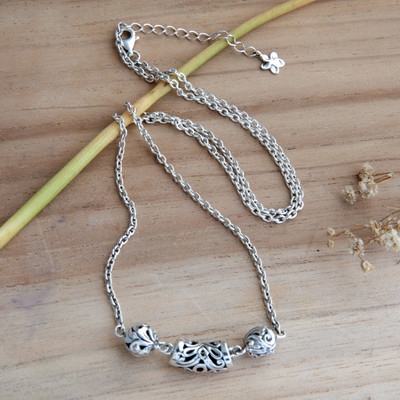 Bubble Love,'Sterling Silver Pendant Necklace with Openwork Accents'