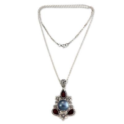 Frangipani Trio,'Hand Made Garnet and Pearl Necklace'