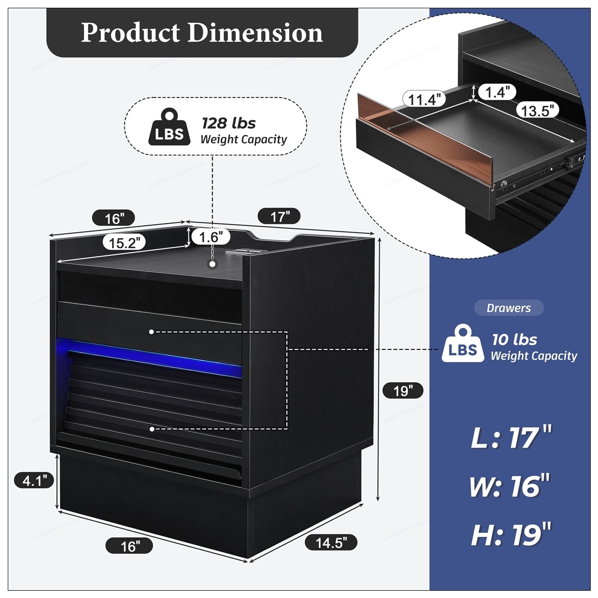 Modern Nightstand with 2 Storage Drawers,Fluted Design