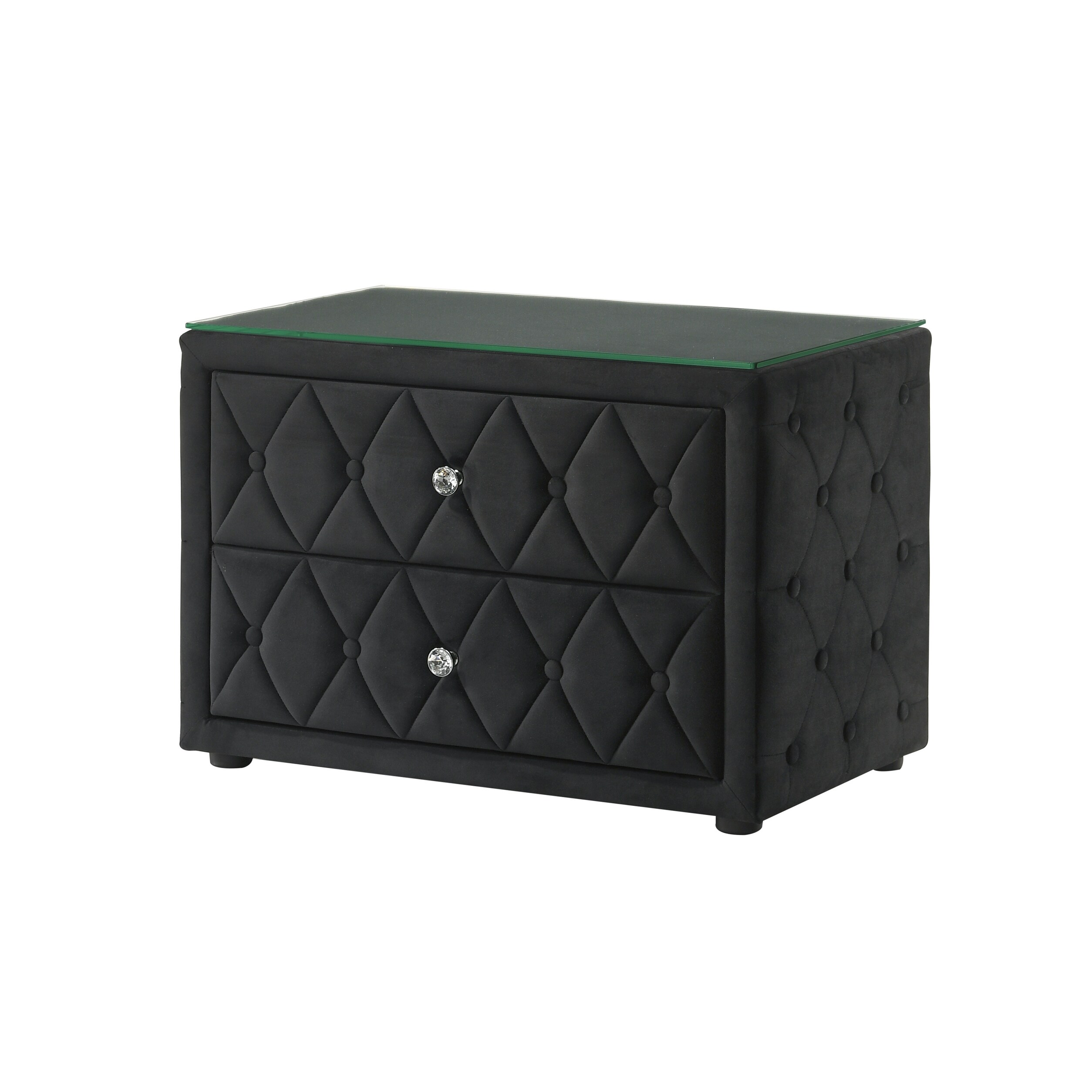 1Pc Luxurious Velvet Upholstery Elegant Diamond-Tufted Design Two Spacious Drawers Sleek Glass Top Nightstand