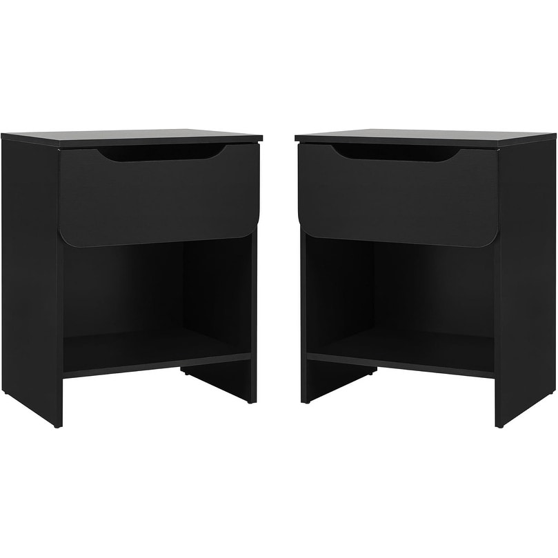 Sleek Modern 1-Drawer Nightstand, Set of 2, Black