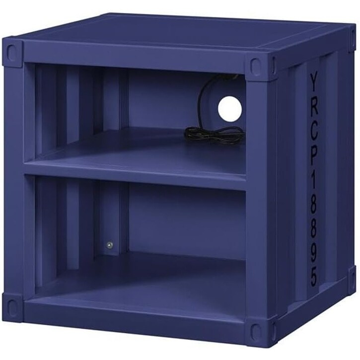 Blue Cargo Nightstand with Metal Frame and Open Compartments