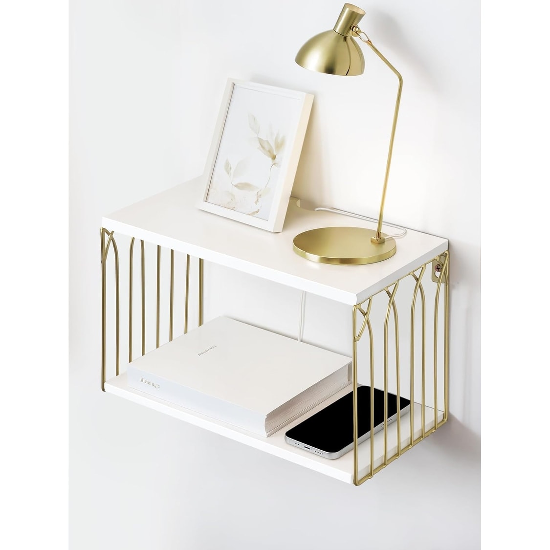 Modern Floating Nightstand with Cable Hole, Wall Mounted 2-Tier Shelf for Bedroom, Bathroom, or Kitchen