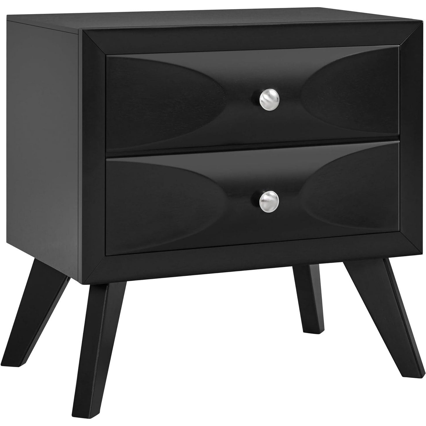 Modern Nightstand with 2 Drawers, Solid Wood Legs, 24.5″L×15″W×23.5″H, Black - Easy Assembly & Spacious Storage