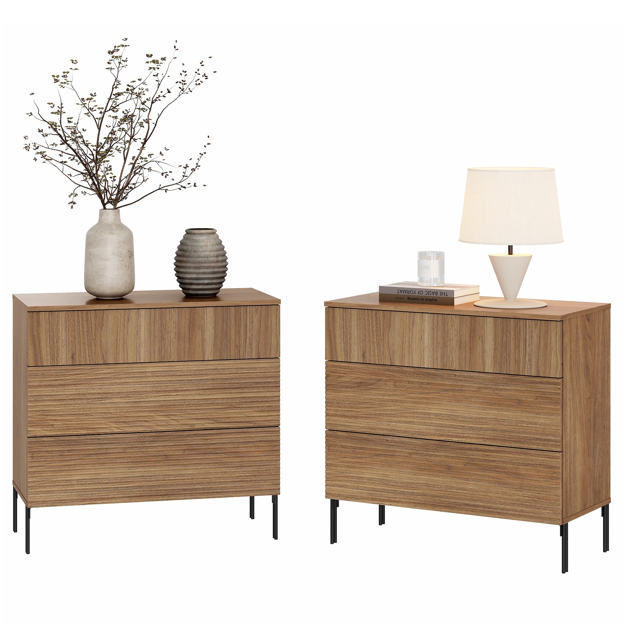 Modern Minimalist Wood Nightstand With 3 Drawers ,31.5" End Table,Reeded Design Bedside Table