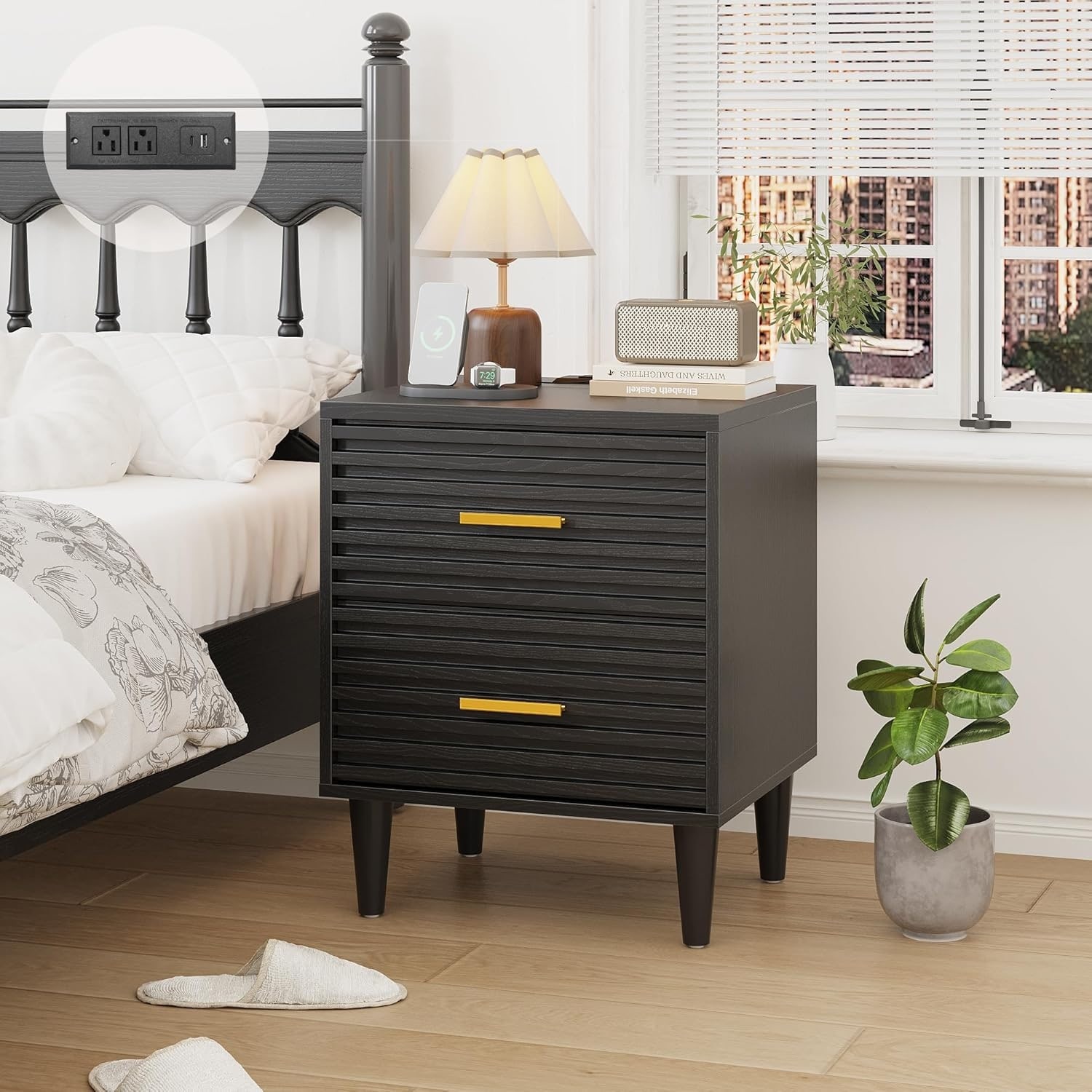Modern Nightstand with Charging Station, 2 Drawers, USB Ports, and Outlets for Bedroom