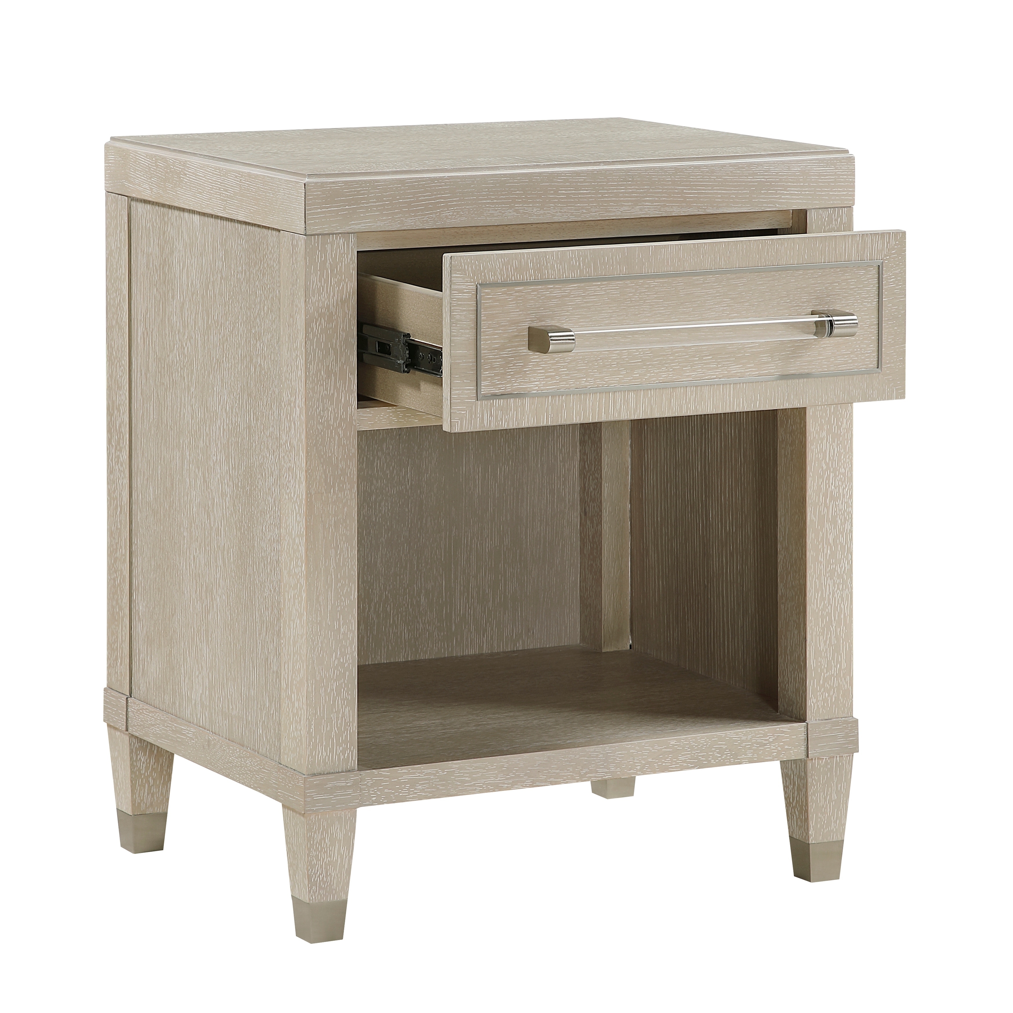 Elegant Light Oak Finish Nightstand with Charging Ports Storage(Includes Only Nightstand)