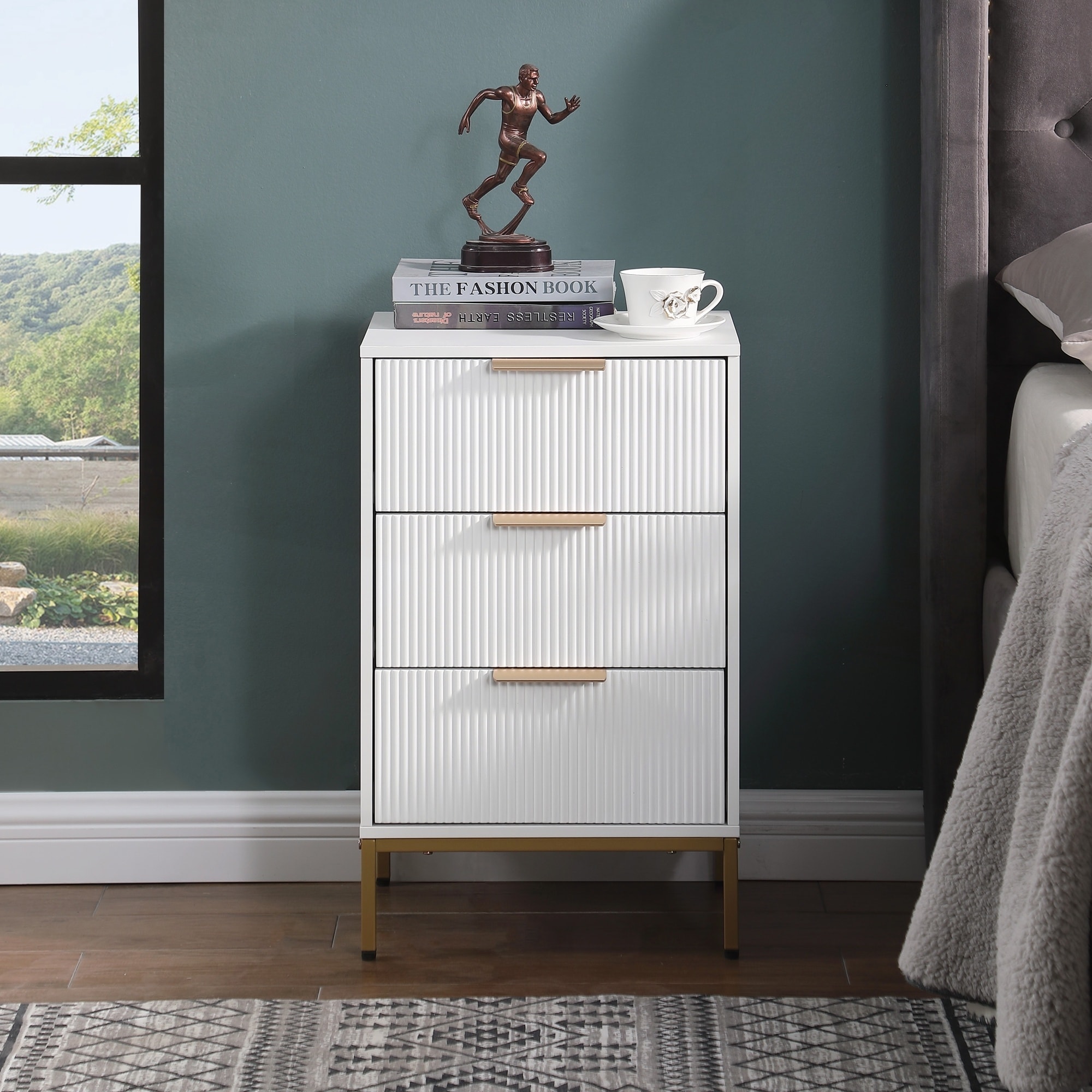 Mid-Century Modern Nightstand with 3 Drawers and Wavy Panels for Elegant Bedroom Storage