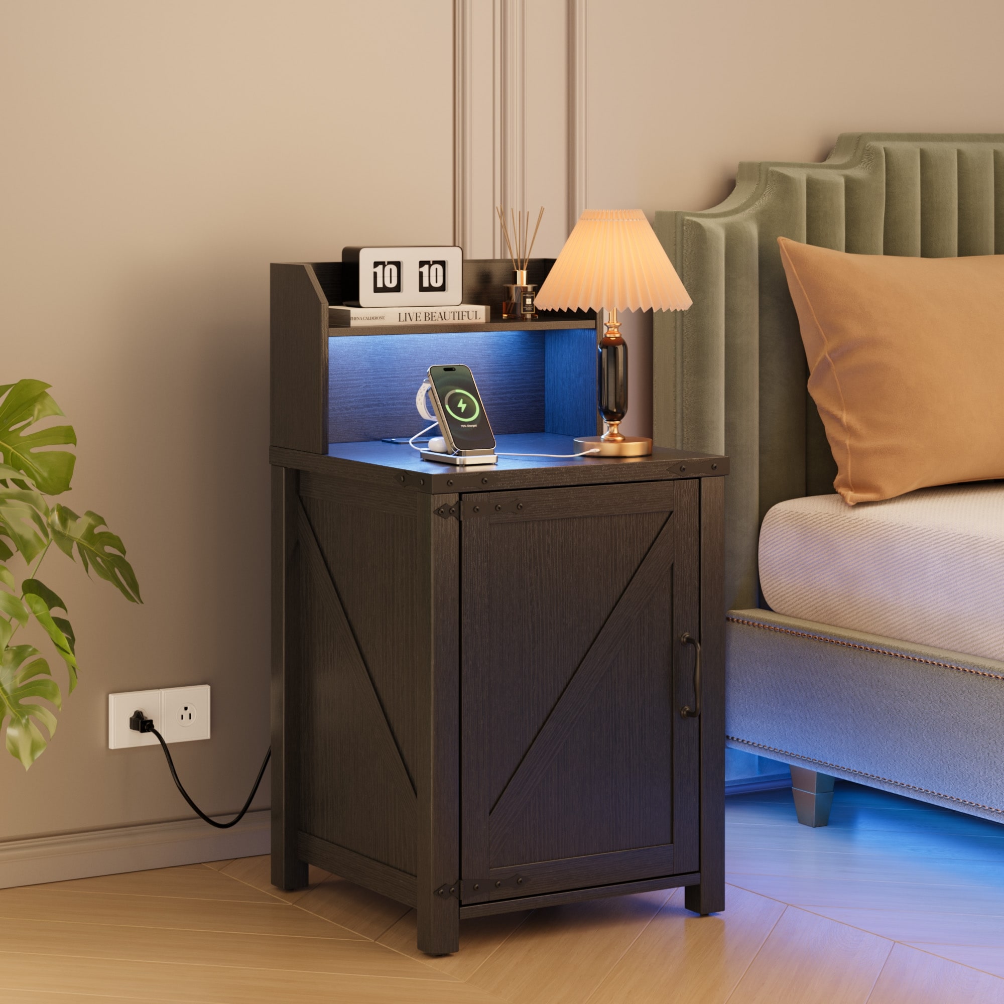 18" Farmhouse Nightstand with Barn Door and Adjustable Storage Shelf