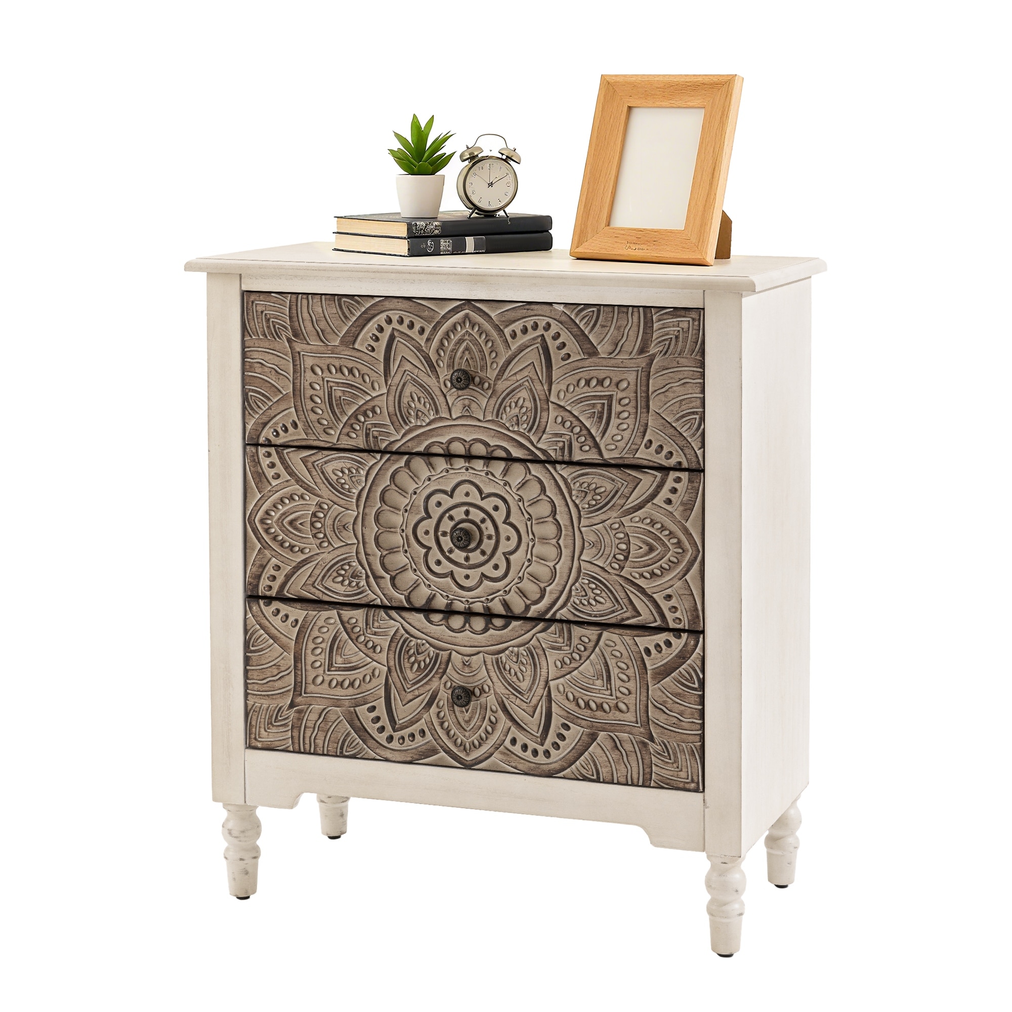 Oversized 3-Drawer Wood Nightstand, Large Storage Night Stand for Bedroom