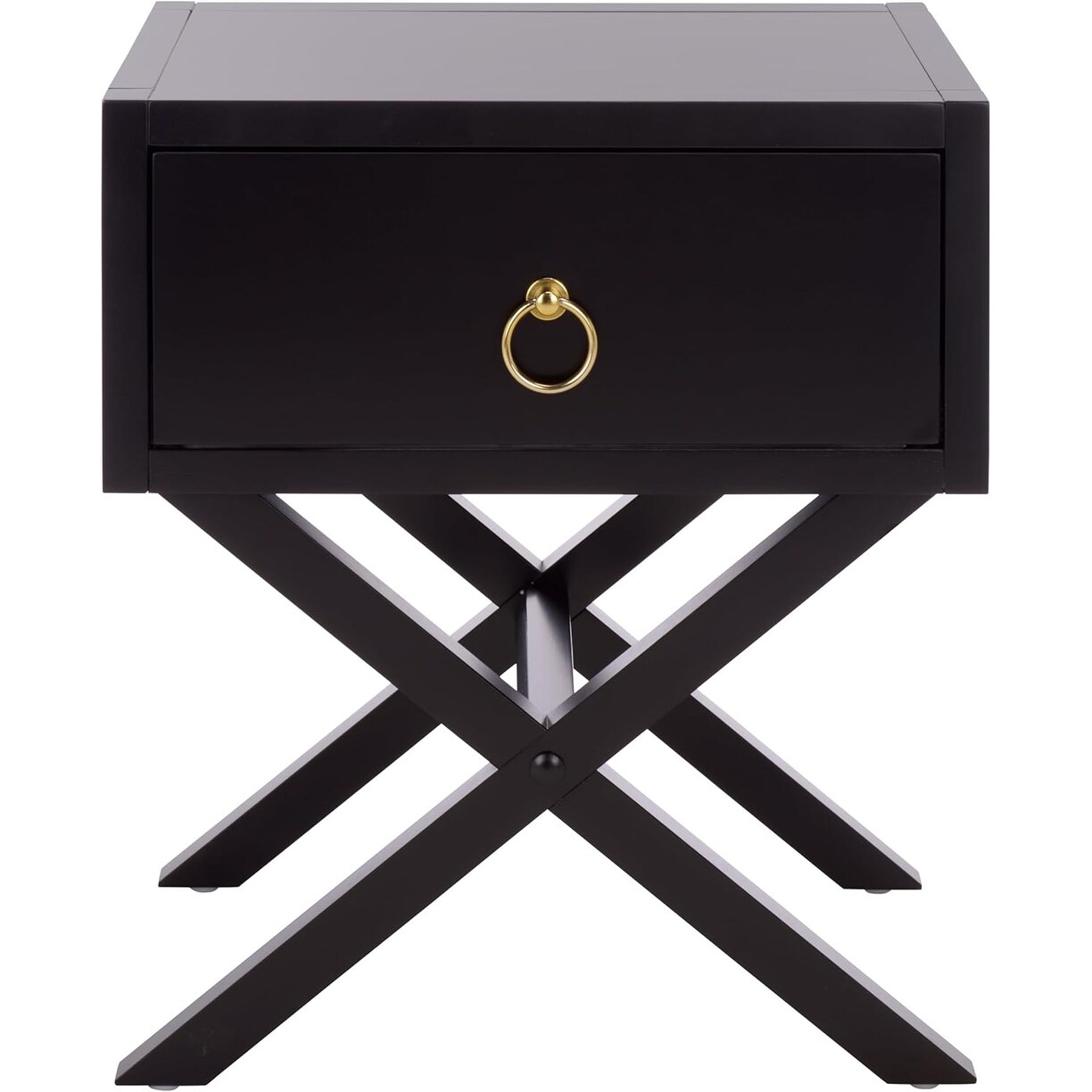 Modern X-Base Design Nightstand with Gold Metal Accent Pull, 1 Drawer Bedside Table